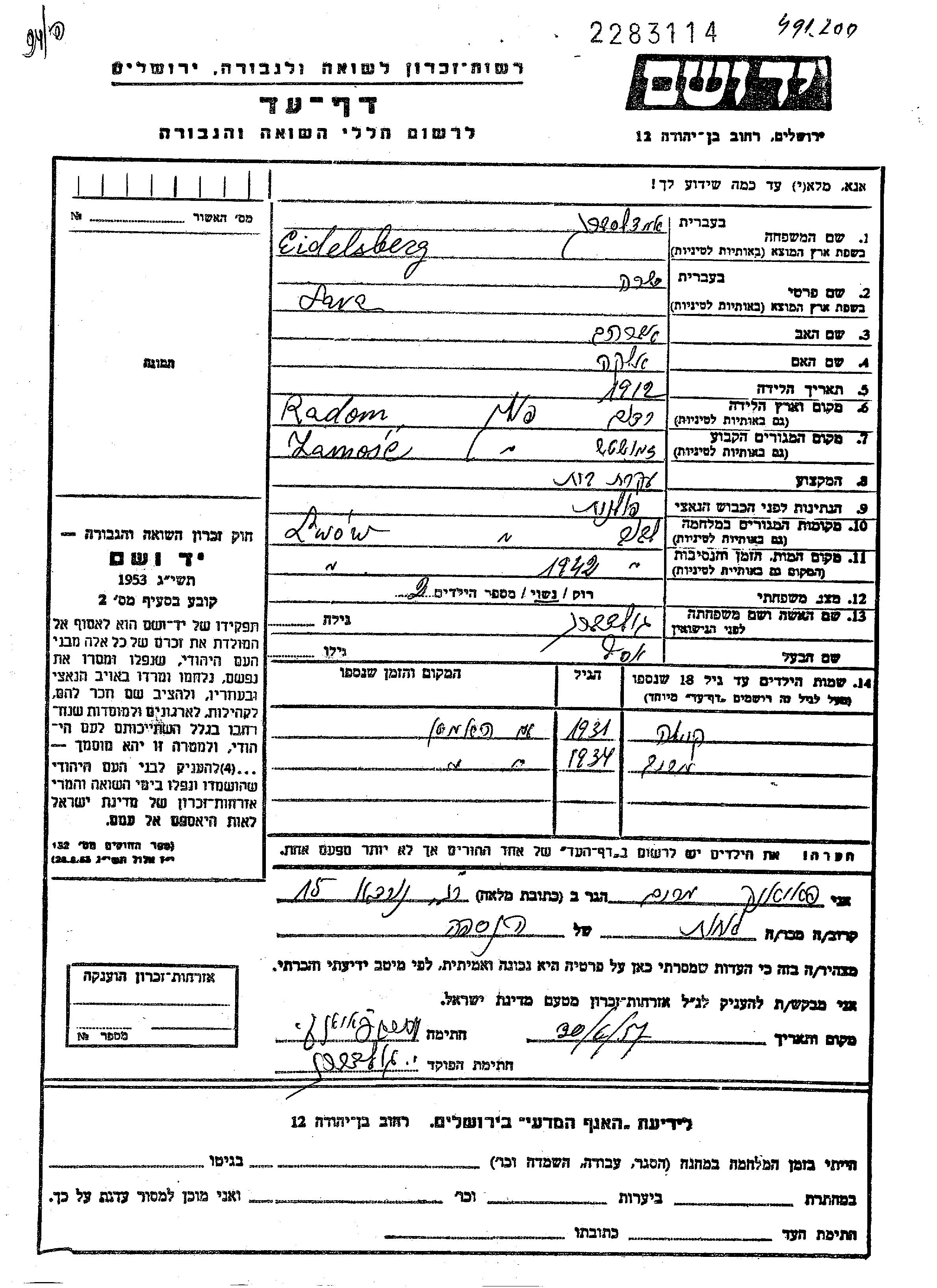 Яд Вашем - Листы свидетельских показаний Мемориального фонда