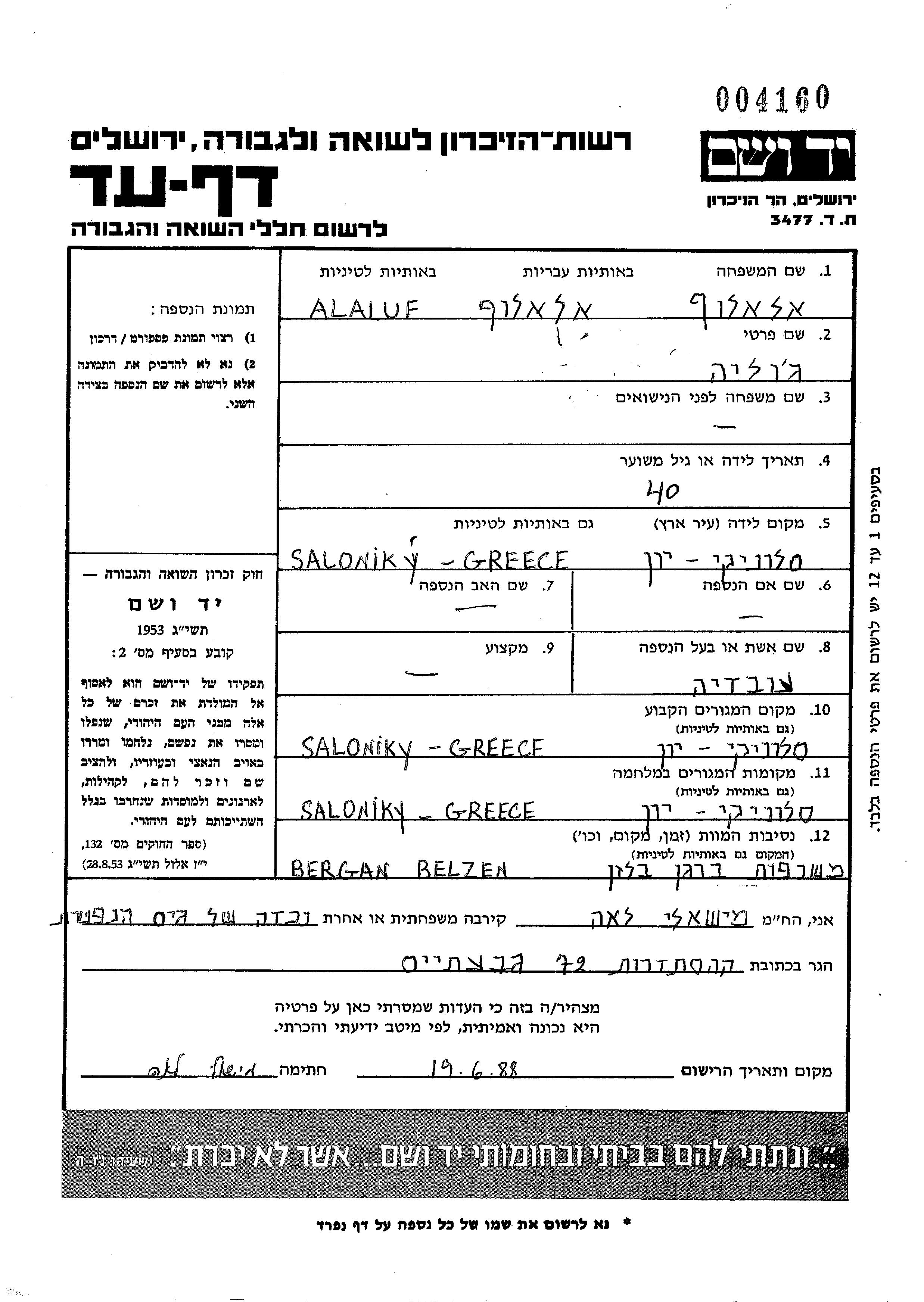 Алалуф Джулия Салоники, Греция Лист свидетельских показаний