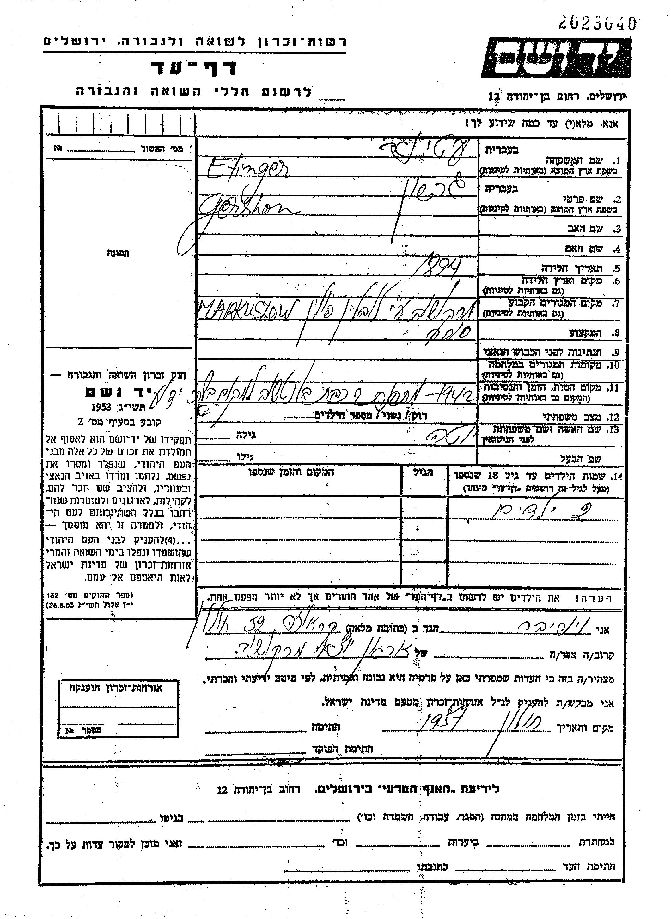 Яд Вашем - Листы свидетельских показаний Мемориального фонда