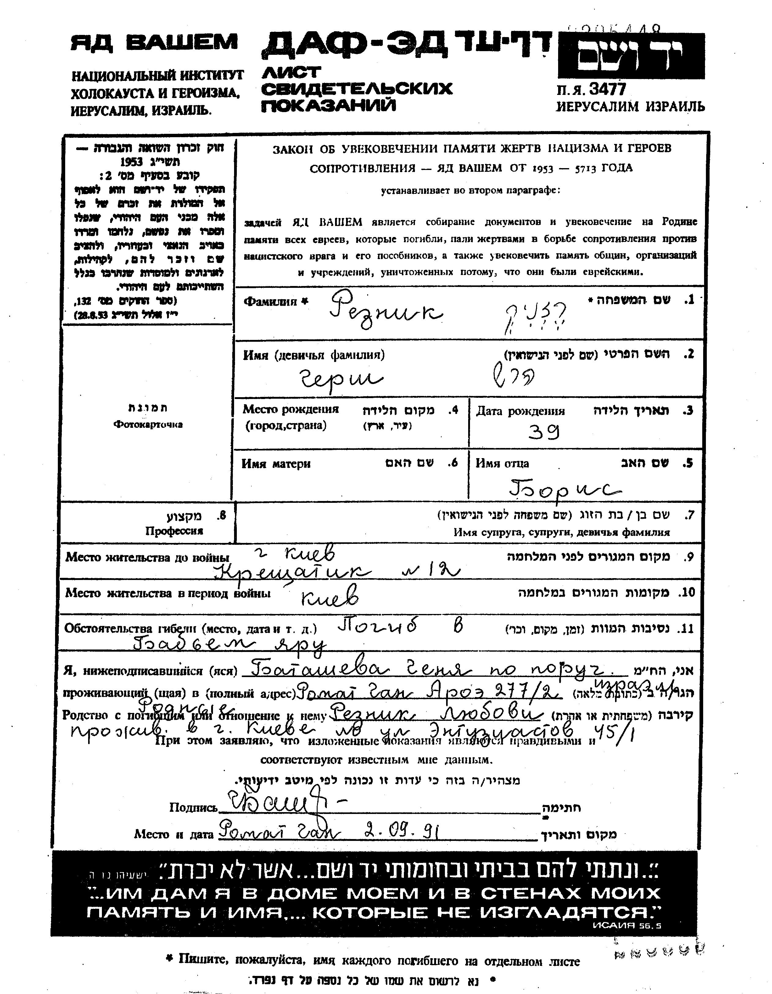 Поиск подателя Листа свидетельских показаний. Поиск по любому имени, включая уменьшительное или прозвище