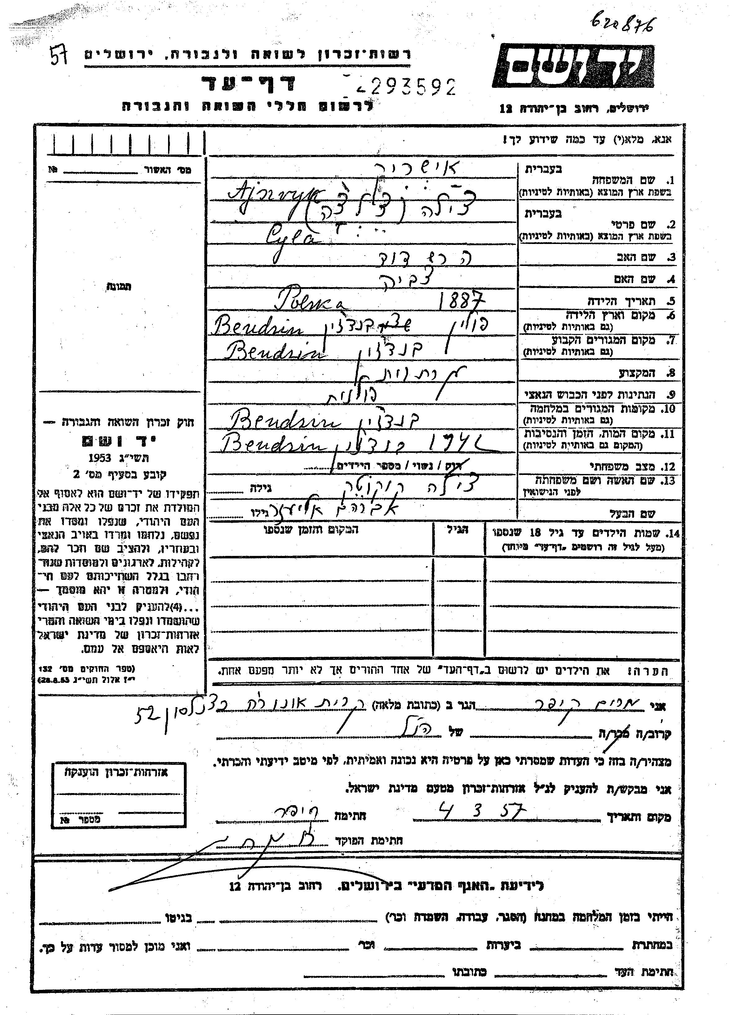 Айшрик Цила 1887 Бендзин, Польша Лист свидетельских показаний