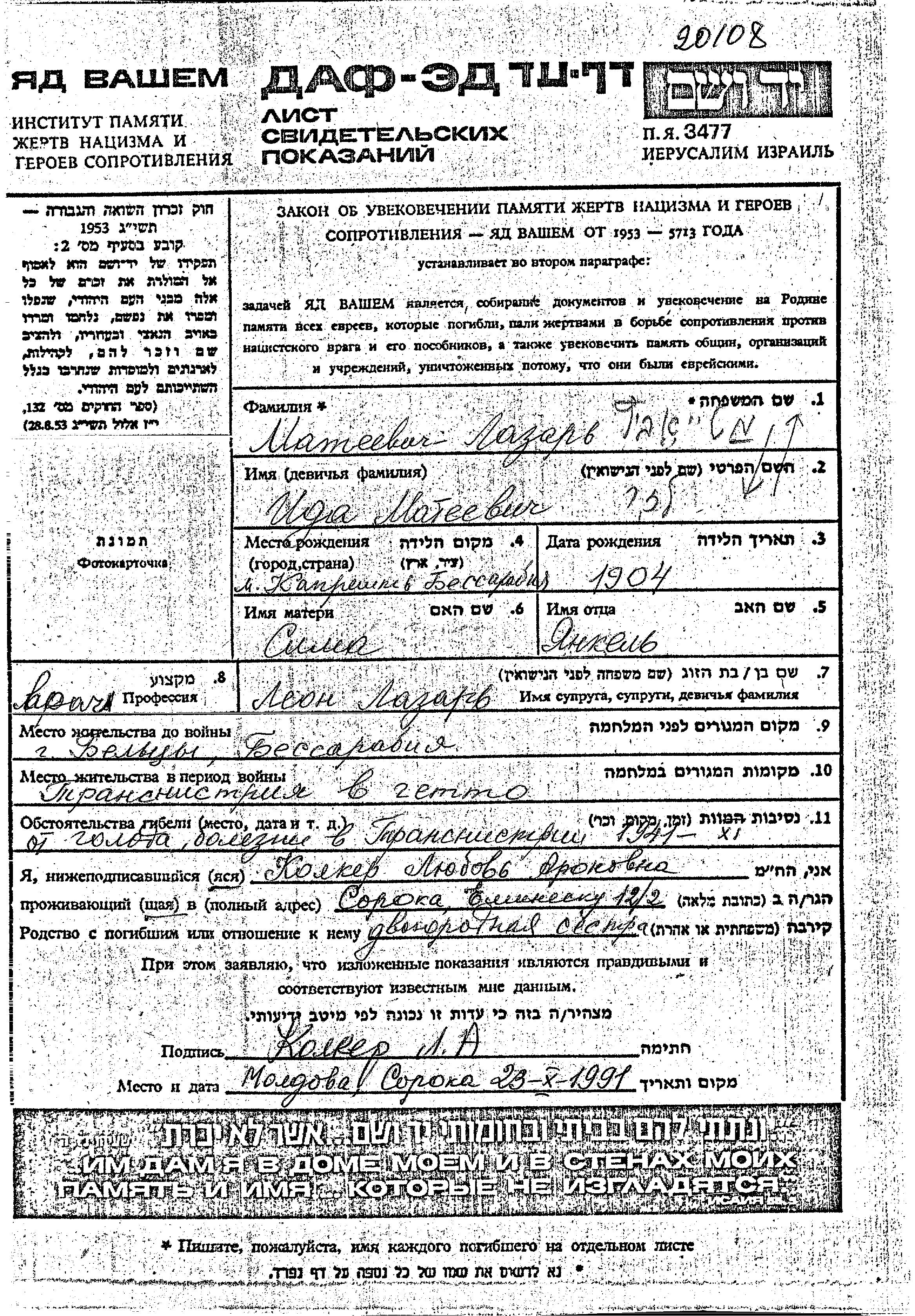 Поиск подателя Листа свидетельских показаний. Поиск по любому имени, включая уменьшительное или прозвище