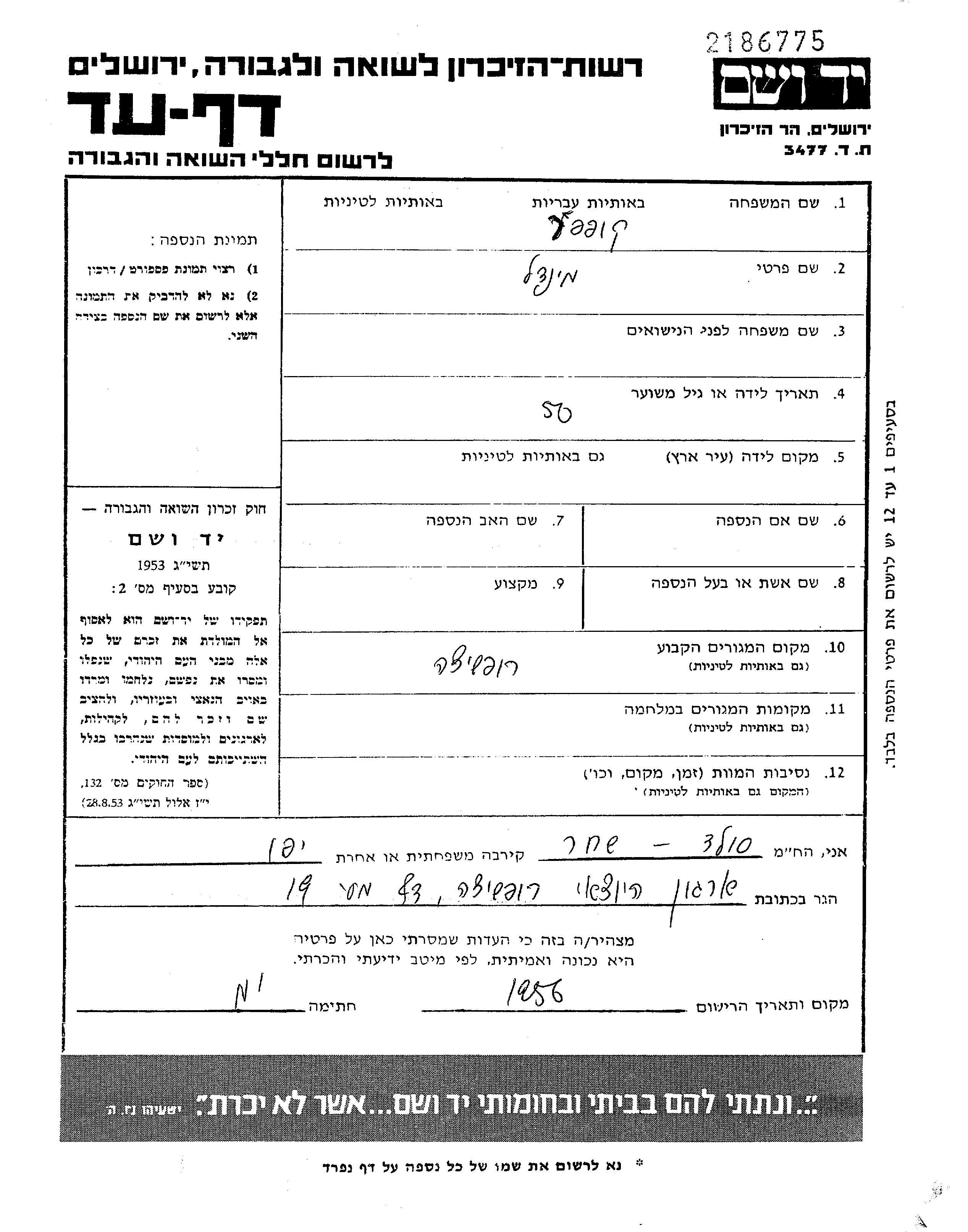 Яд Вашем - Листы свидетельских показаний Мемориального фонда