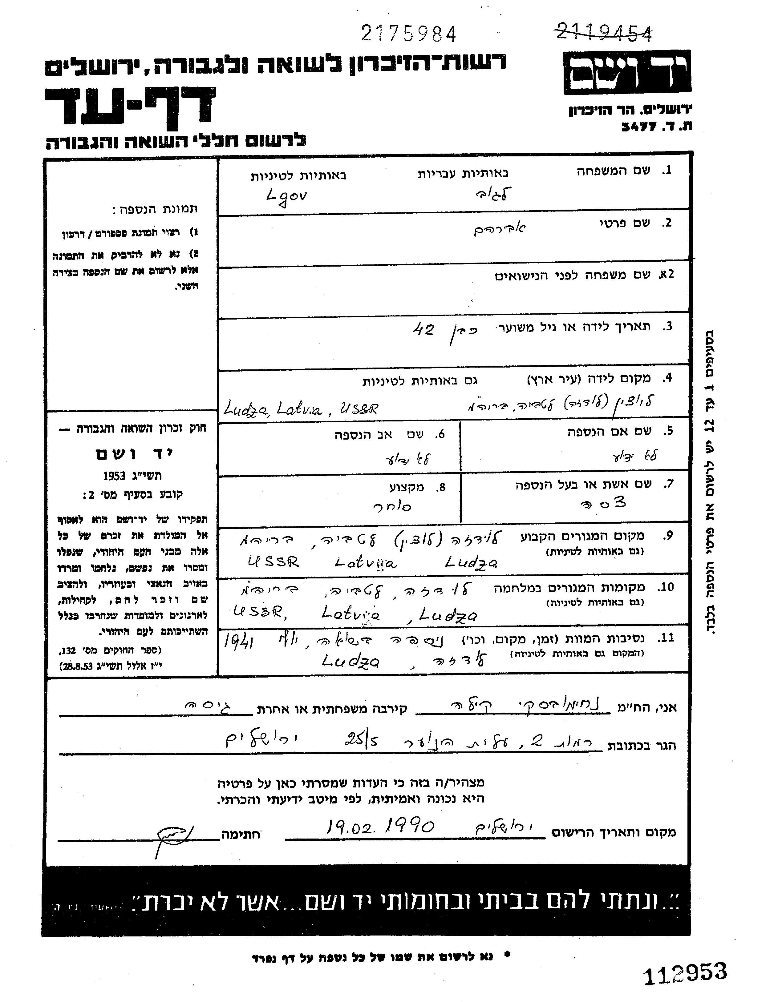 Льгов Авраам Лудза, Латвия Лист свидетельских показаний