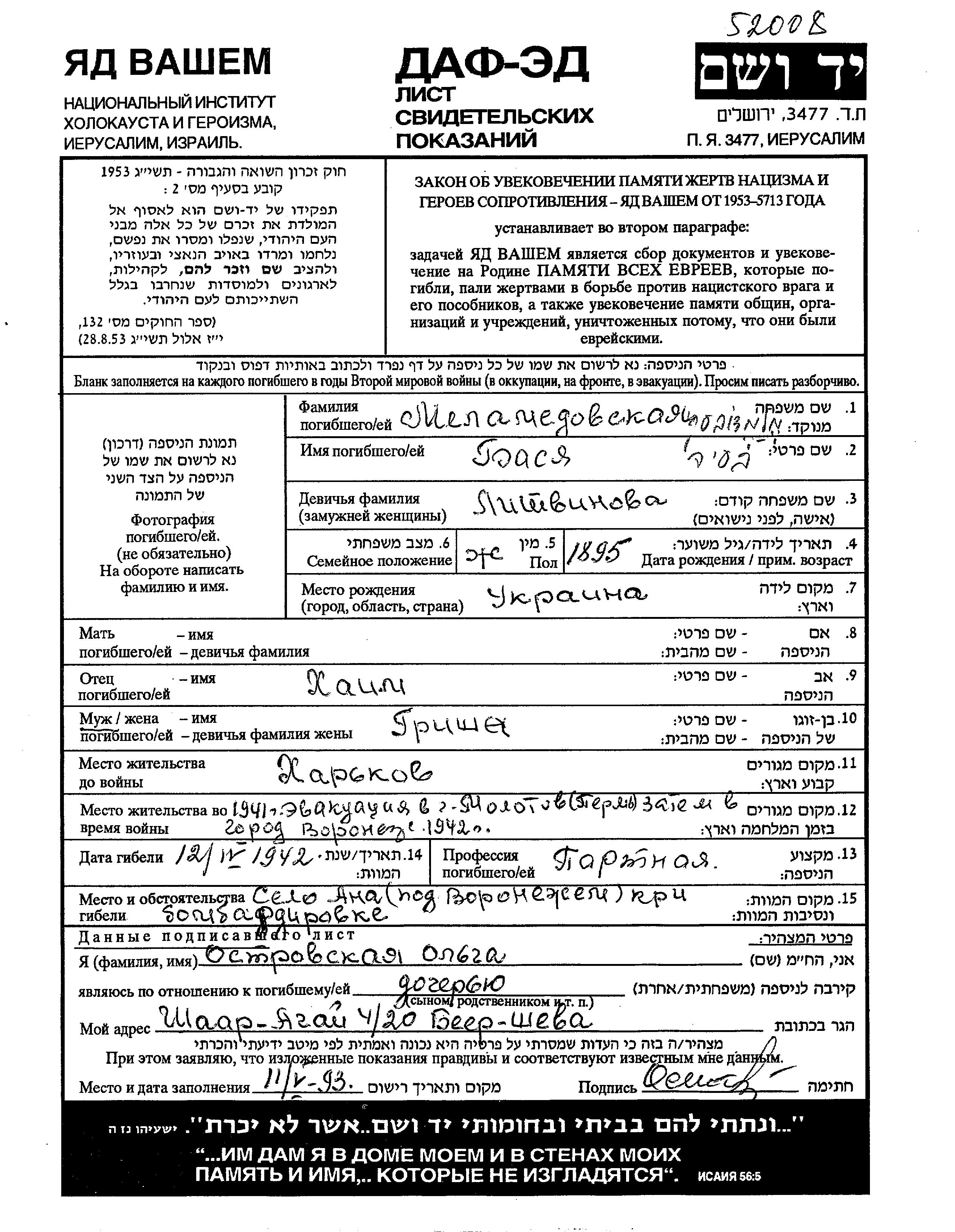 Поиск подателя Листа свидетельских показаний. Поиск по любому имени, включая уменьшительное или прозвище