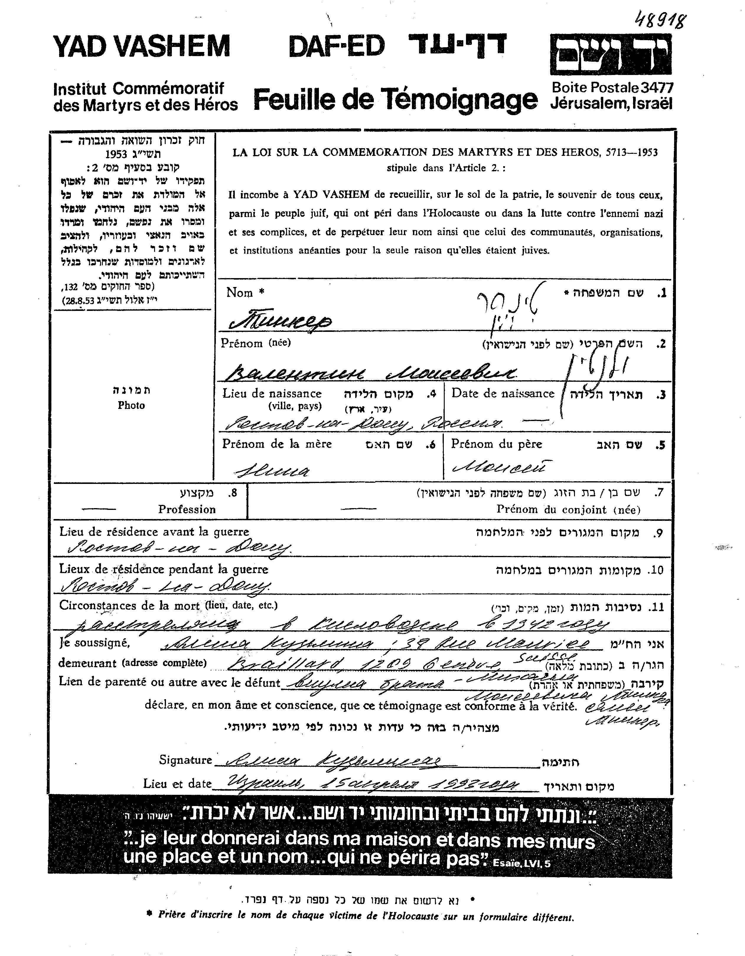 Яд Вашем - Листы свидетельских показаний Мемориального фонда