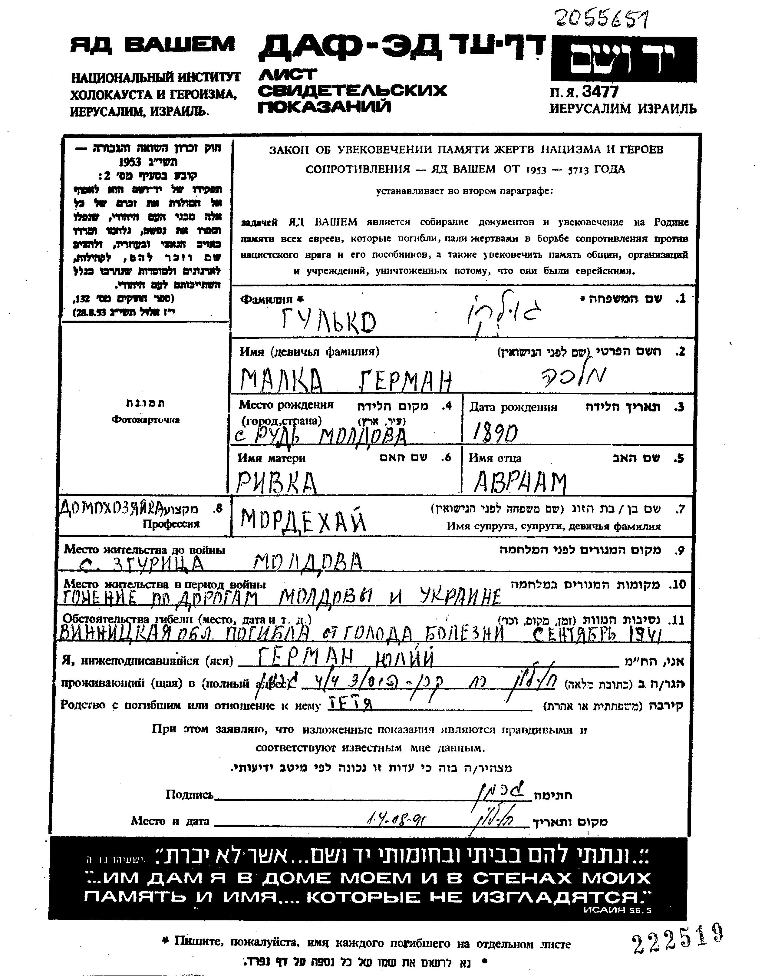 Поиск подателя Листа свидетельских показаний. Поиск по любому имени, включая уменьшительное или прозвище
