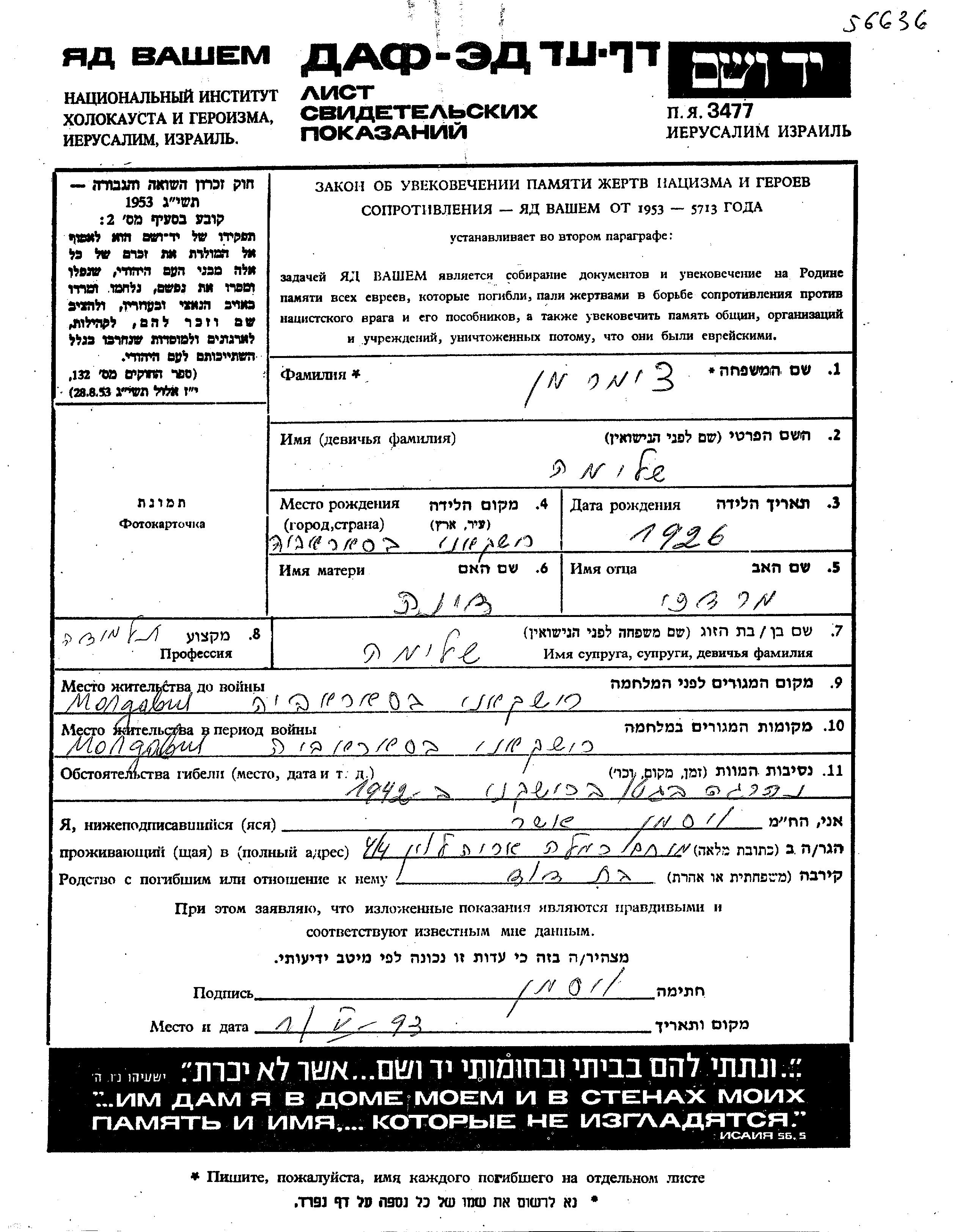 Яд Вашем - Листы свидетельских показаний Мемориального фонда