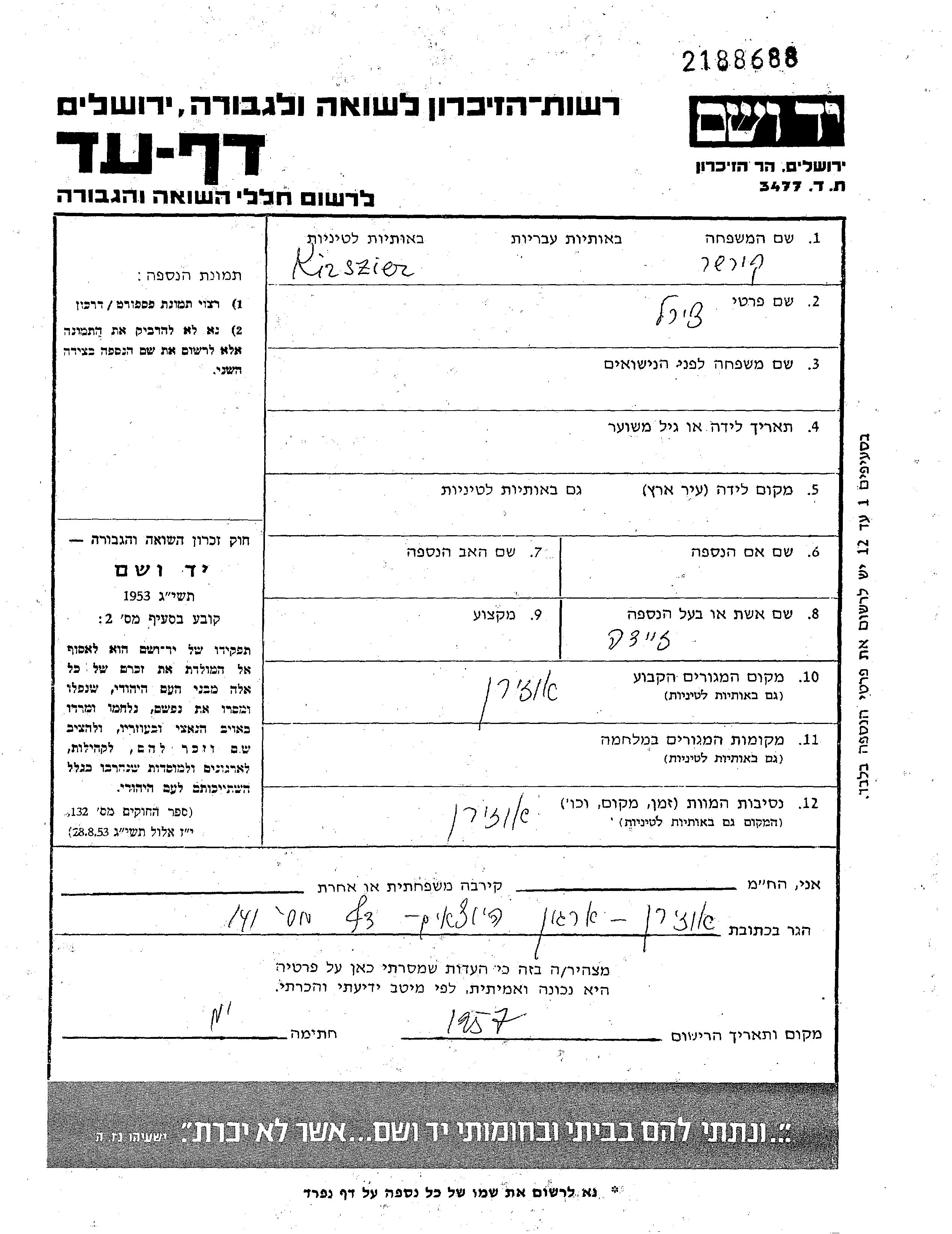 Kirszier Цирель Озеряны, Польша Лист свидетельских показаний