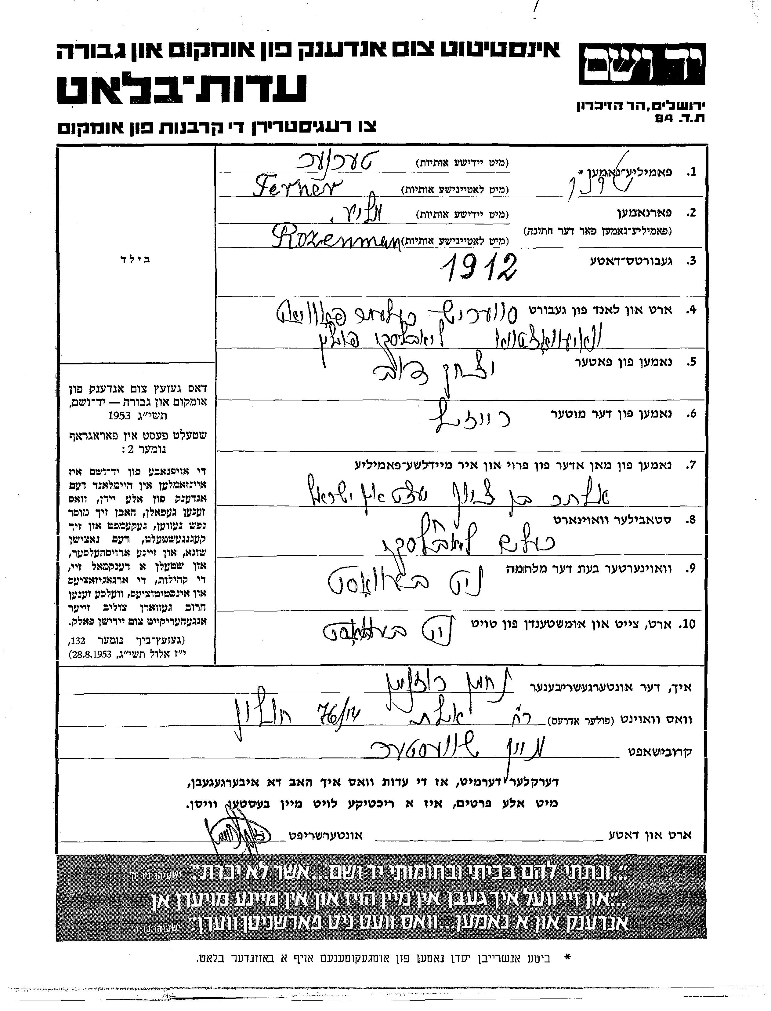 Яд Вашем - Листы свидетельских показаний Мемориального фонда