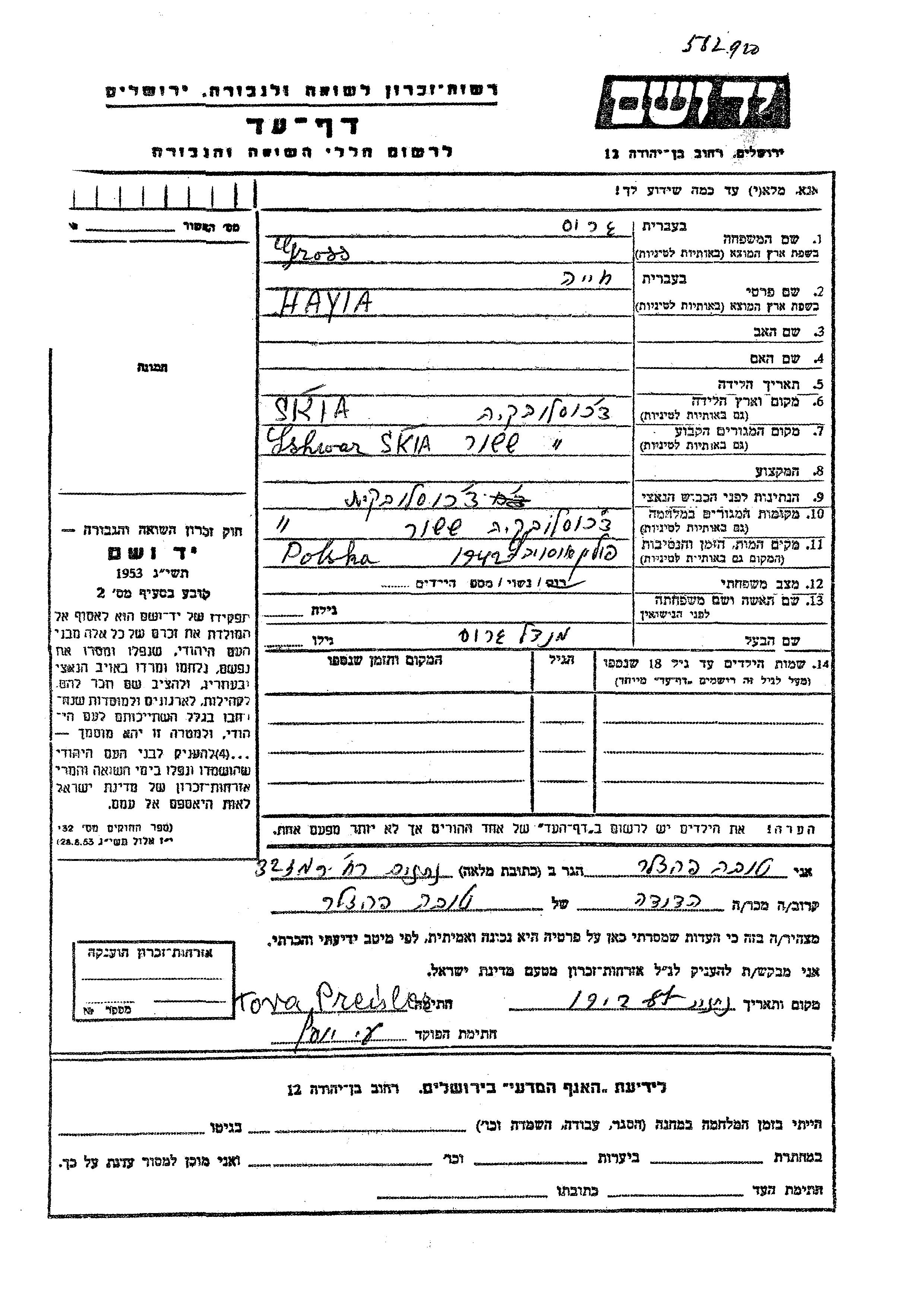 Яд Вашем - Листы свидетельских показаний Мемориального фонда