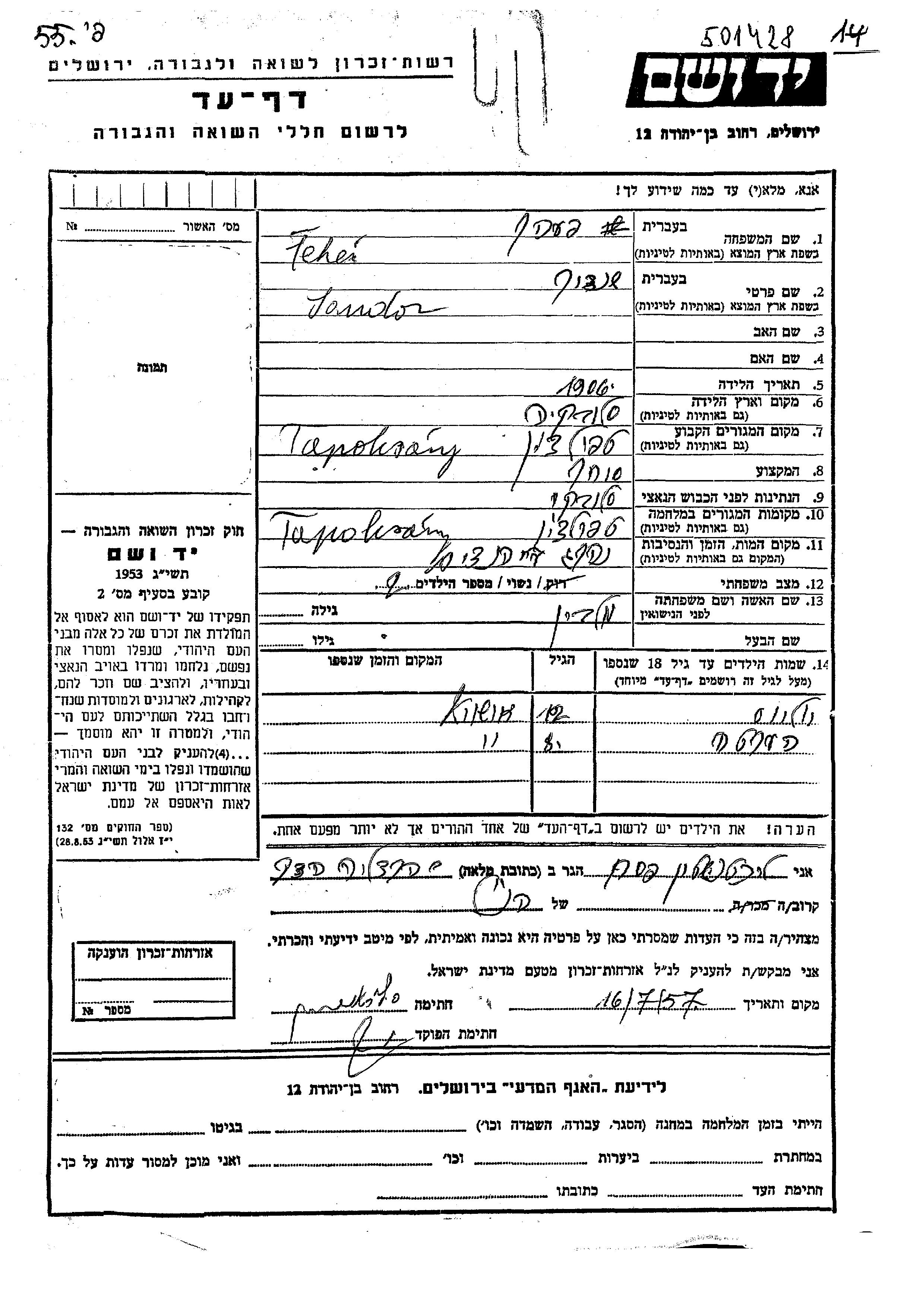 Яд Вашем - Листы свидетельских показаний Мемориального фонда