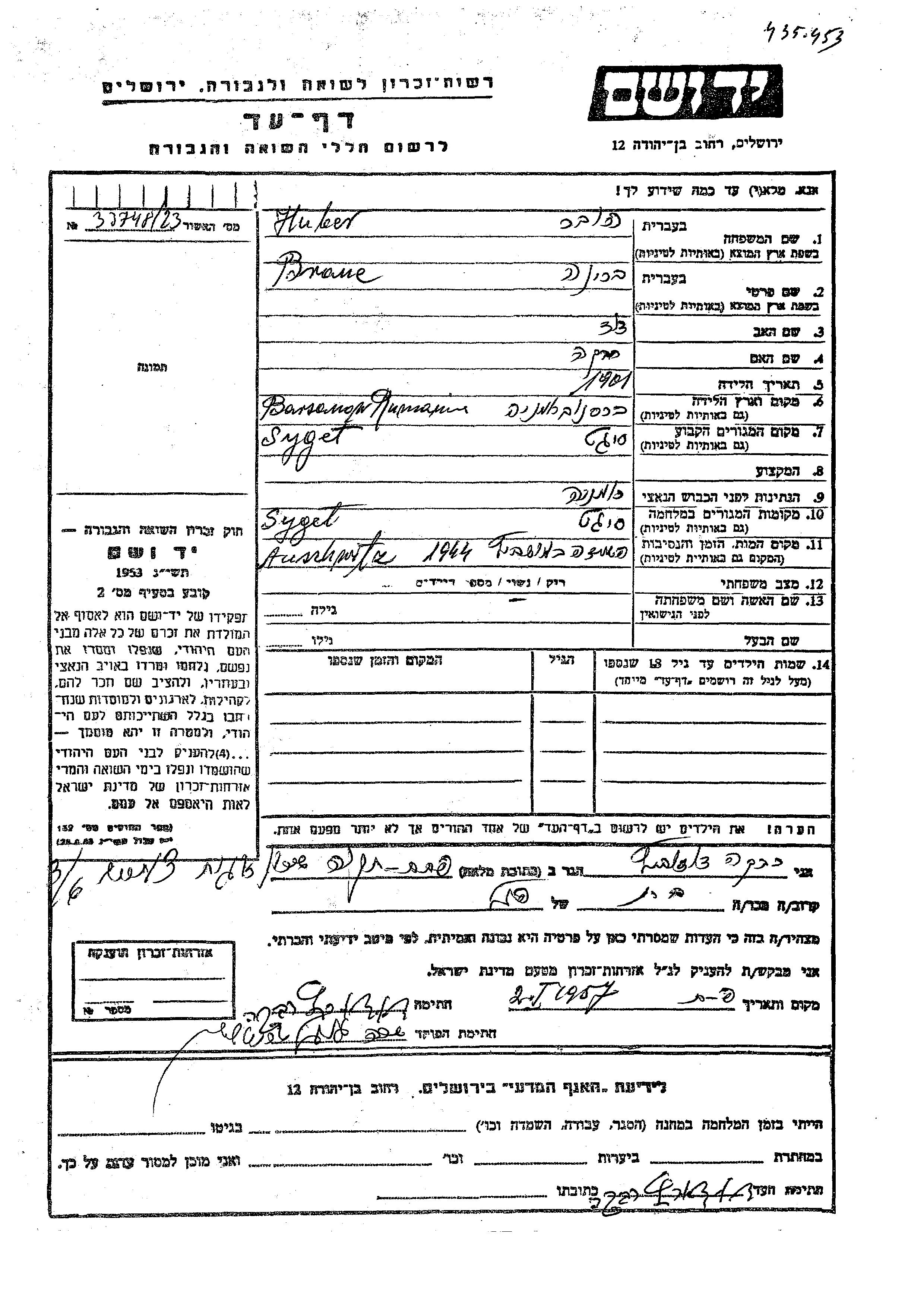 Яд Вашем - Листы свидетельских показаний Мемориального фонда