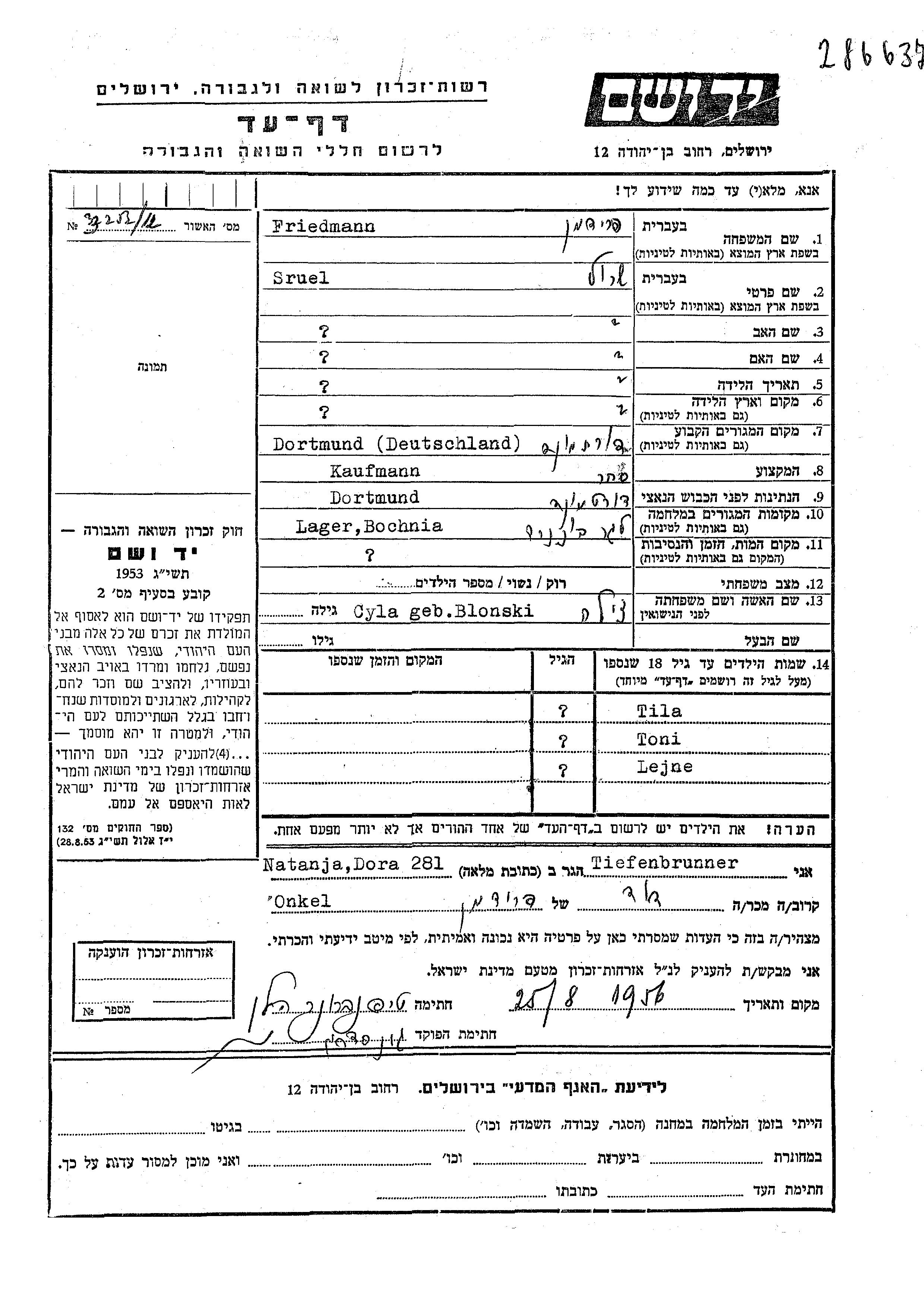 Фридманн Сруэль Дортмунд, Германия Лист свидетельских показаний
