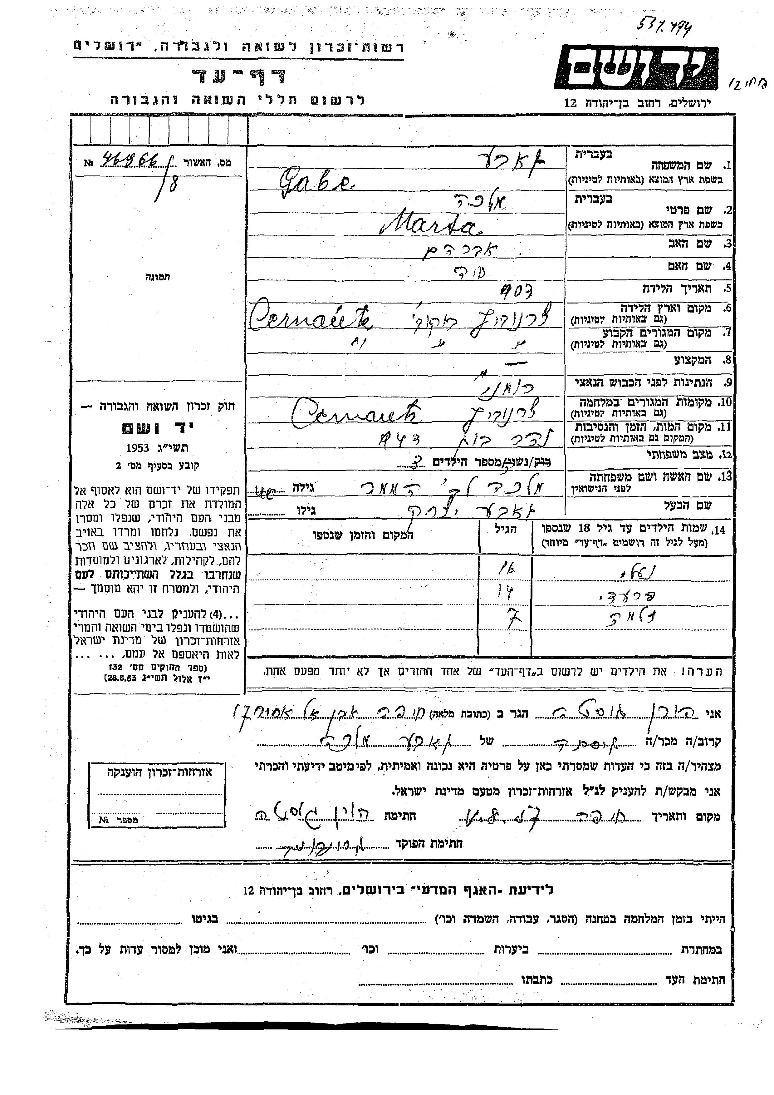 Яд Вашем - Листы свидетельских показаний Мемориального фонда