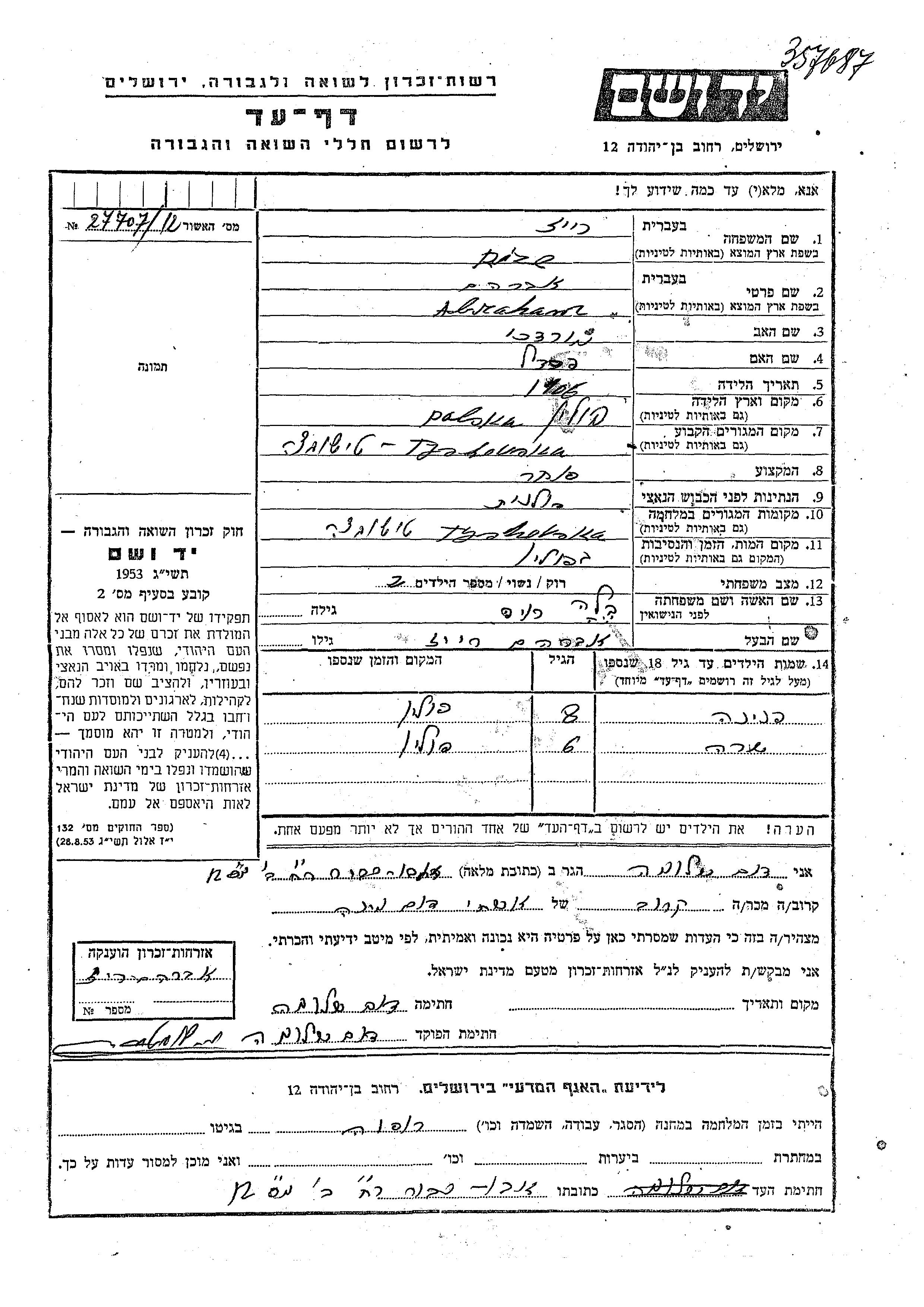 Яд Вашем - Листы свидетельских показаний Мемориального фонда