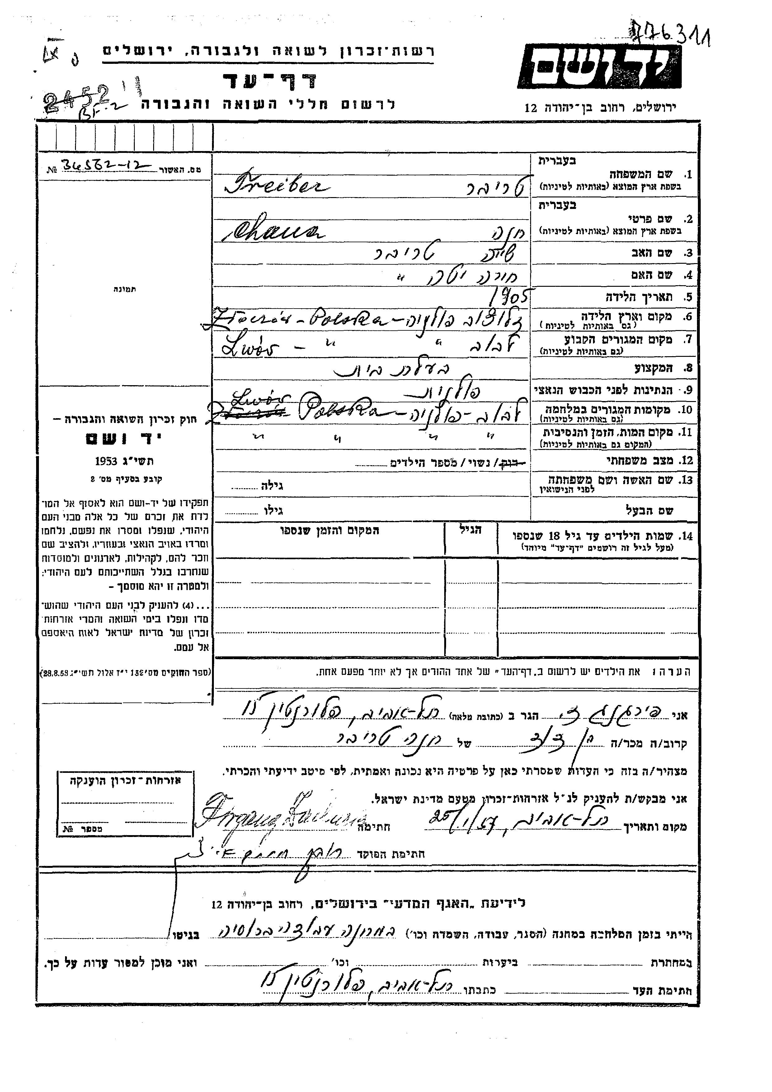Трейбер Трибер Хана 1905 Львов, Польша Лист свидетельских показаний