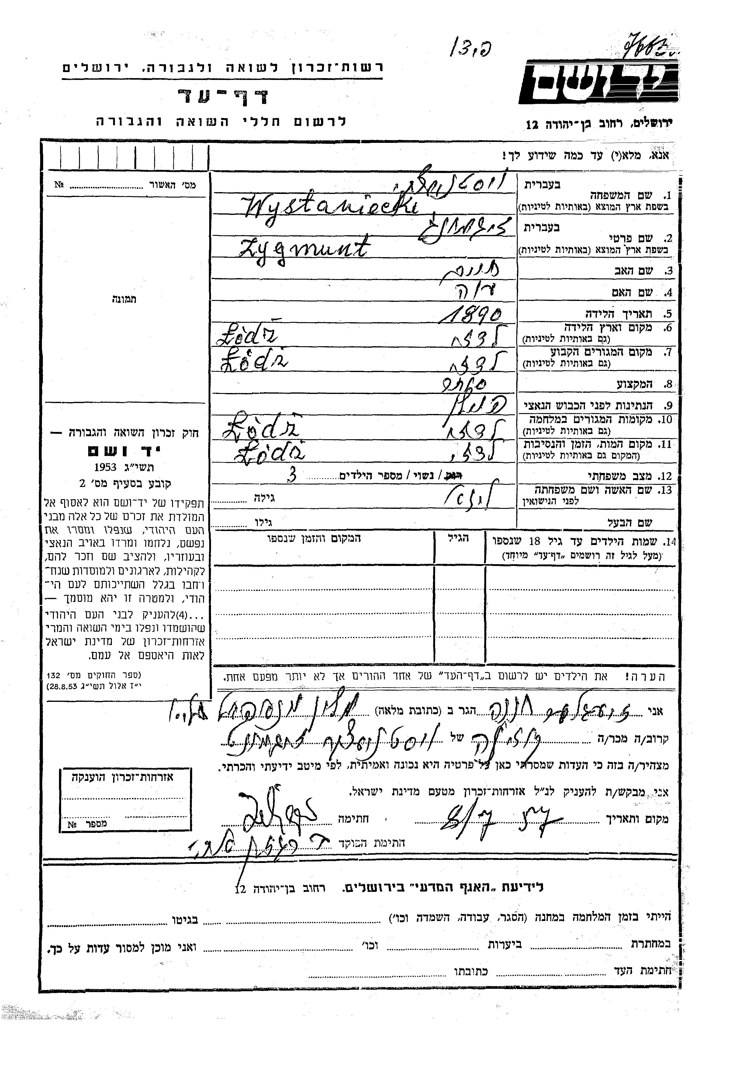 Яд Вашем - Листы свидетельских показаний Мемориального фонда