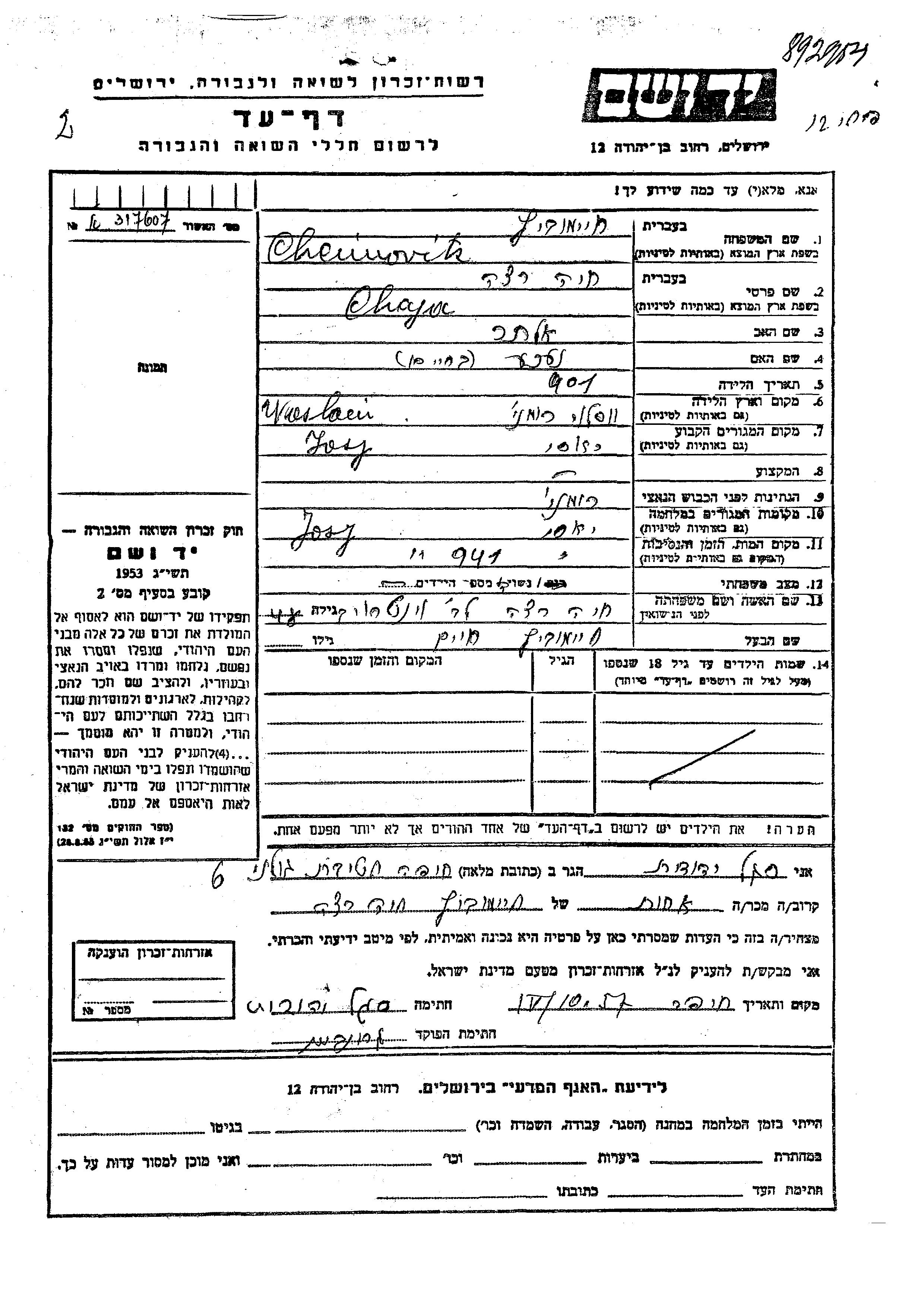 Яд Вашем - Листы свидетельских показаний Мемориального фонда