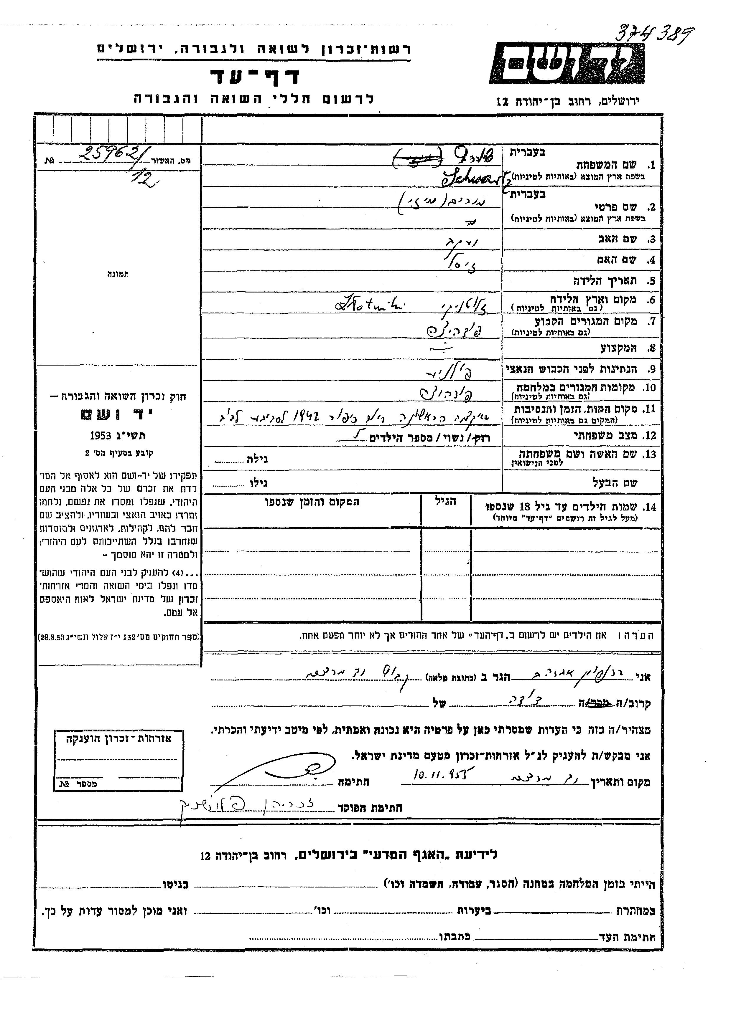 Яд Вашем - Листы свидетельских показаний Мемориального фонда