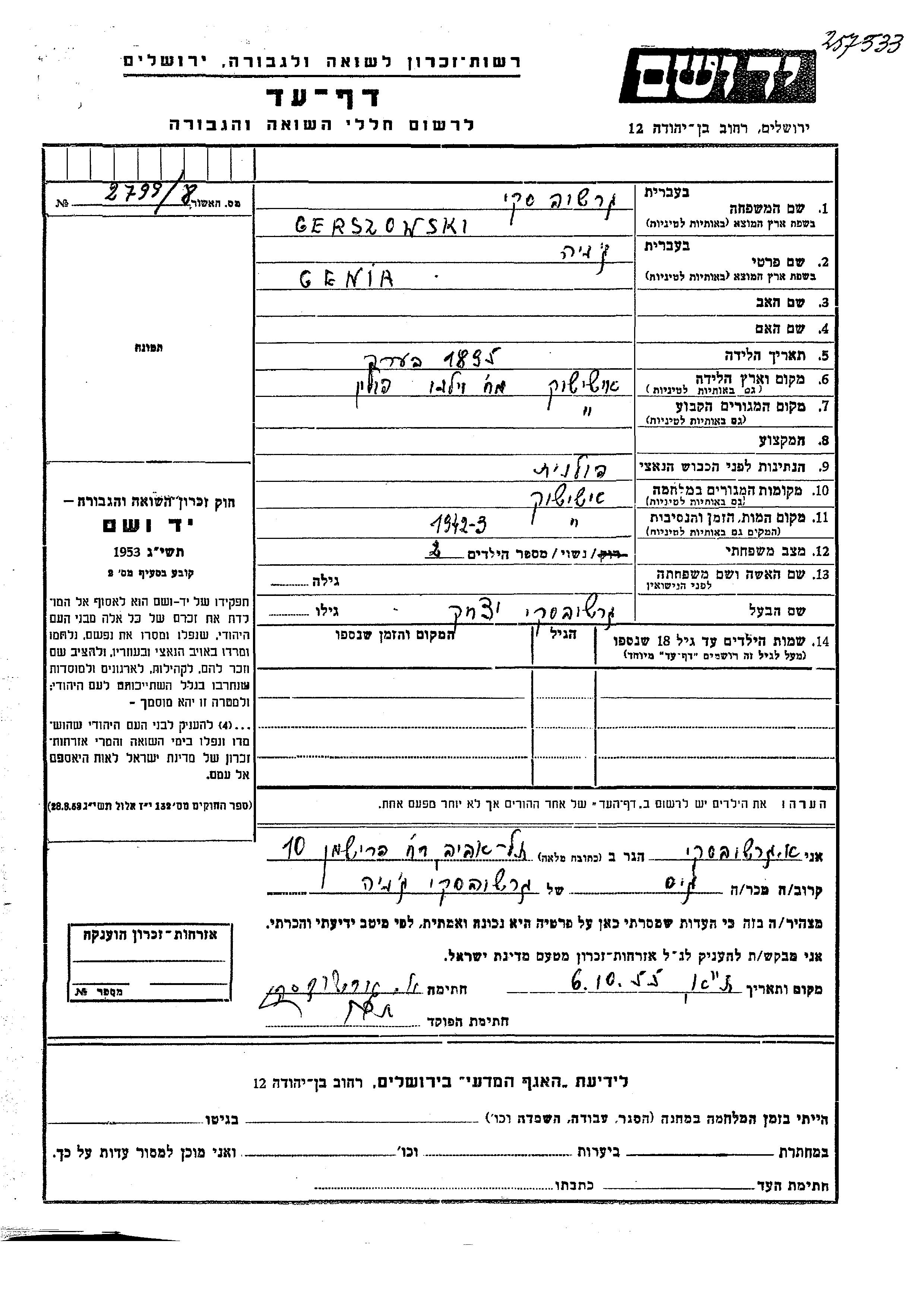 Яд Вашем - Листы свидетельских показаний Мемориального фонда