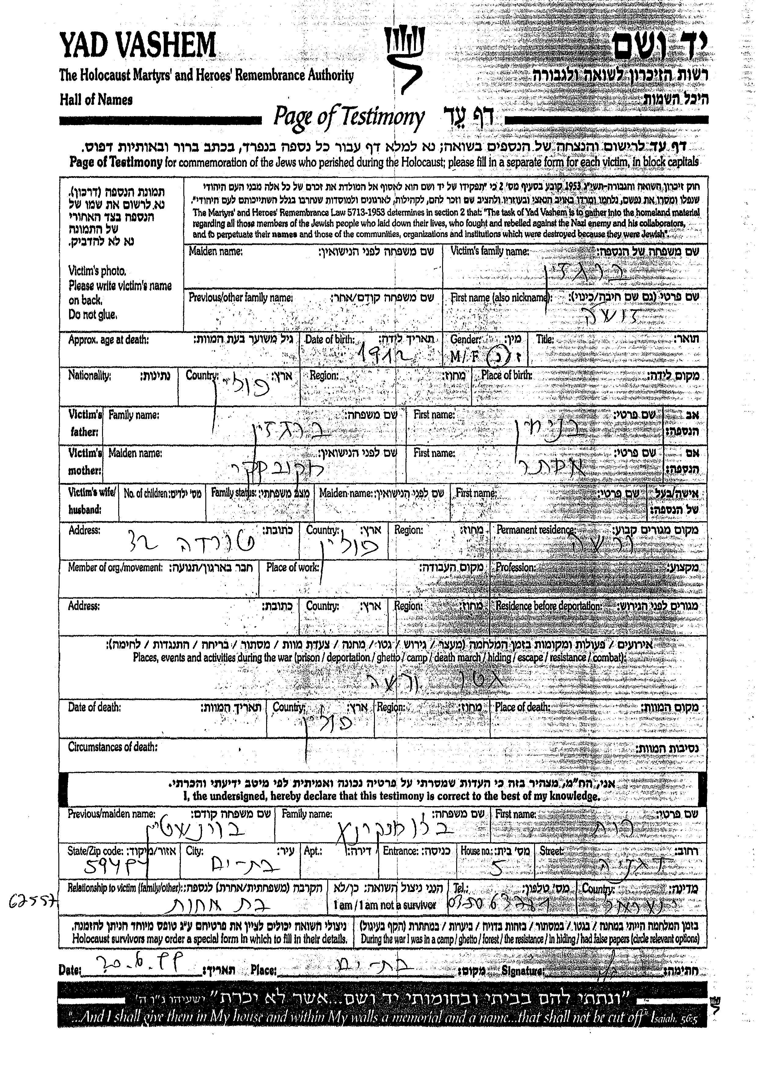 Яд Вашем - Листы свидетельских показаний Мемориального фонда