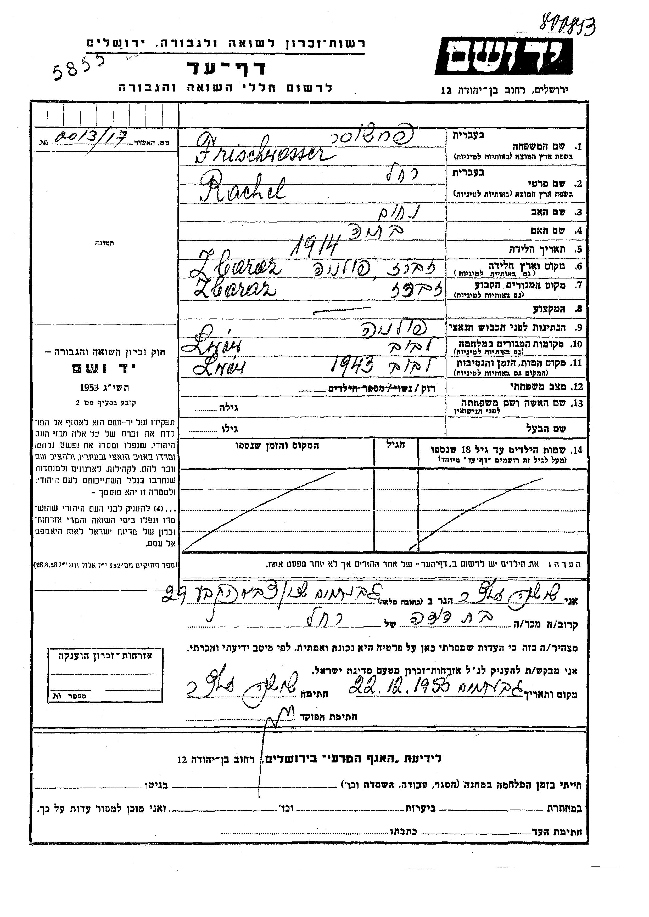 Яд Вашем - Листы свидетельских показаний Мемориального фонда