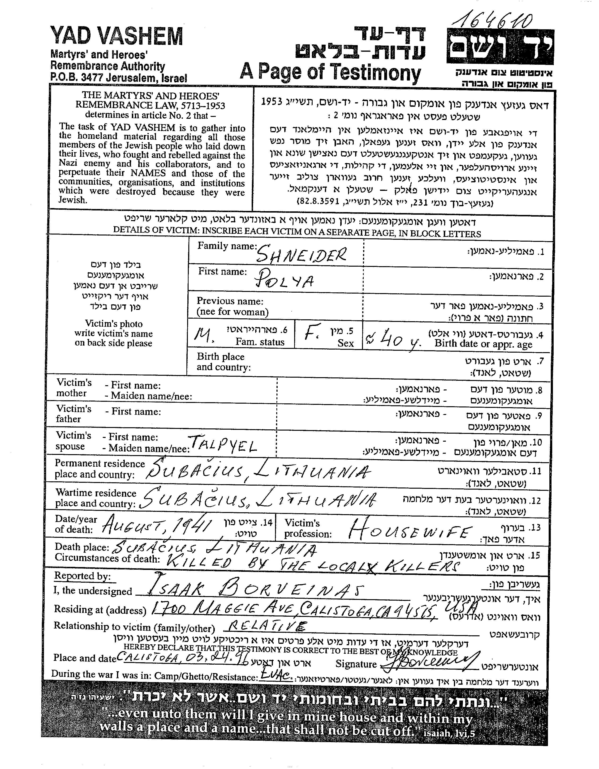 Поиск подателя Листа свидетельских показаний. Поиск по любому имени, включая уменьшительное или прозвище