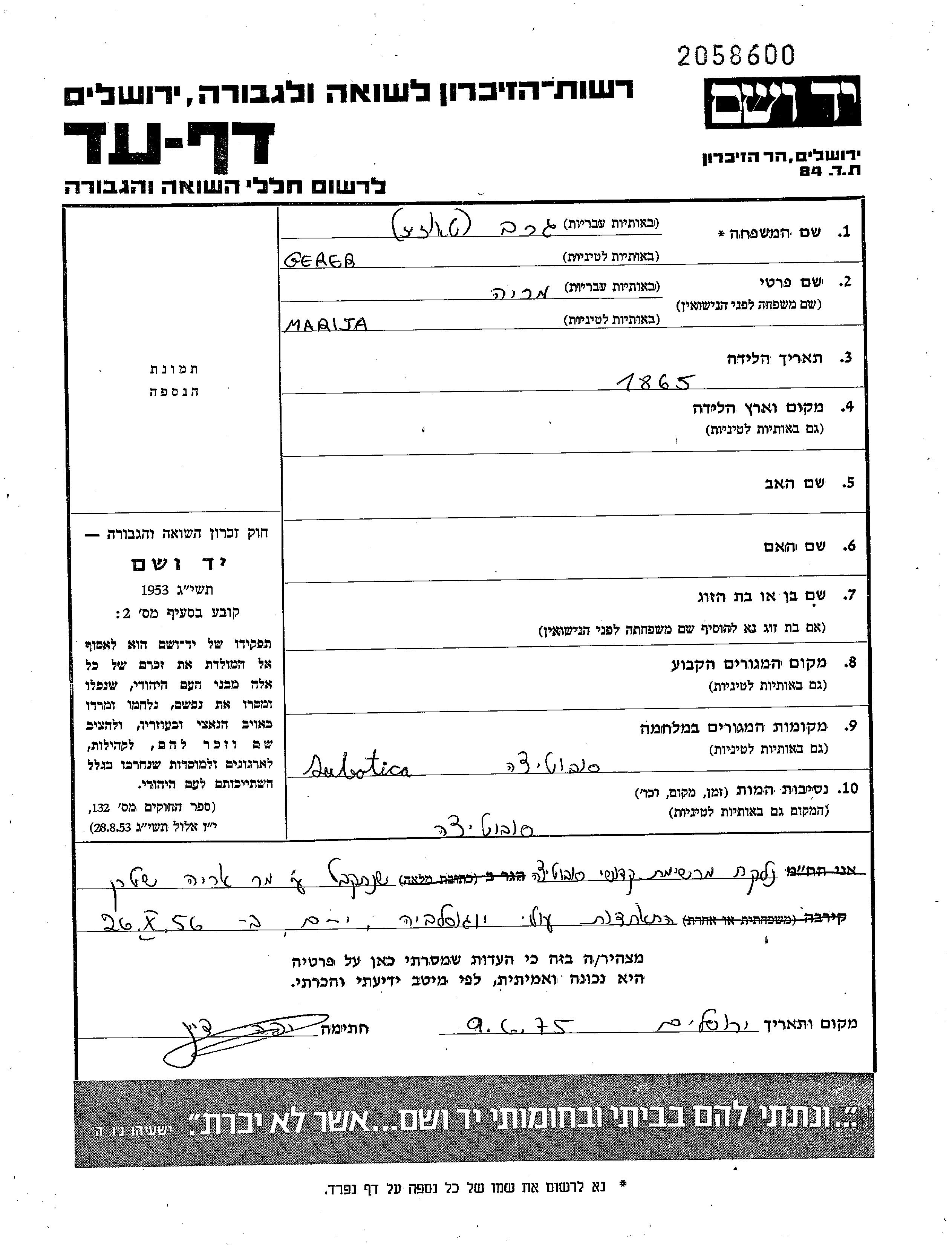Яд Вашем - Листы свидетельских показаний Мемориального фонда