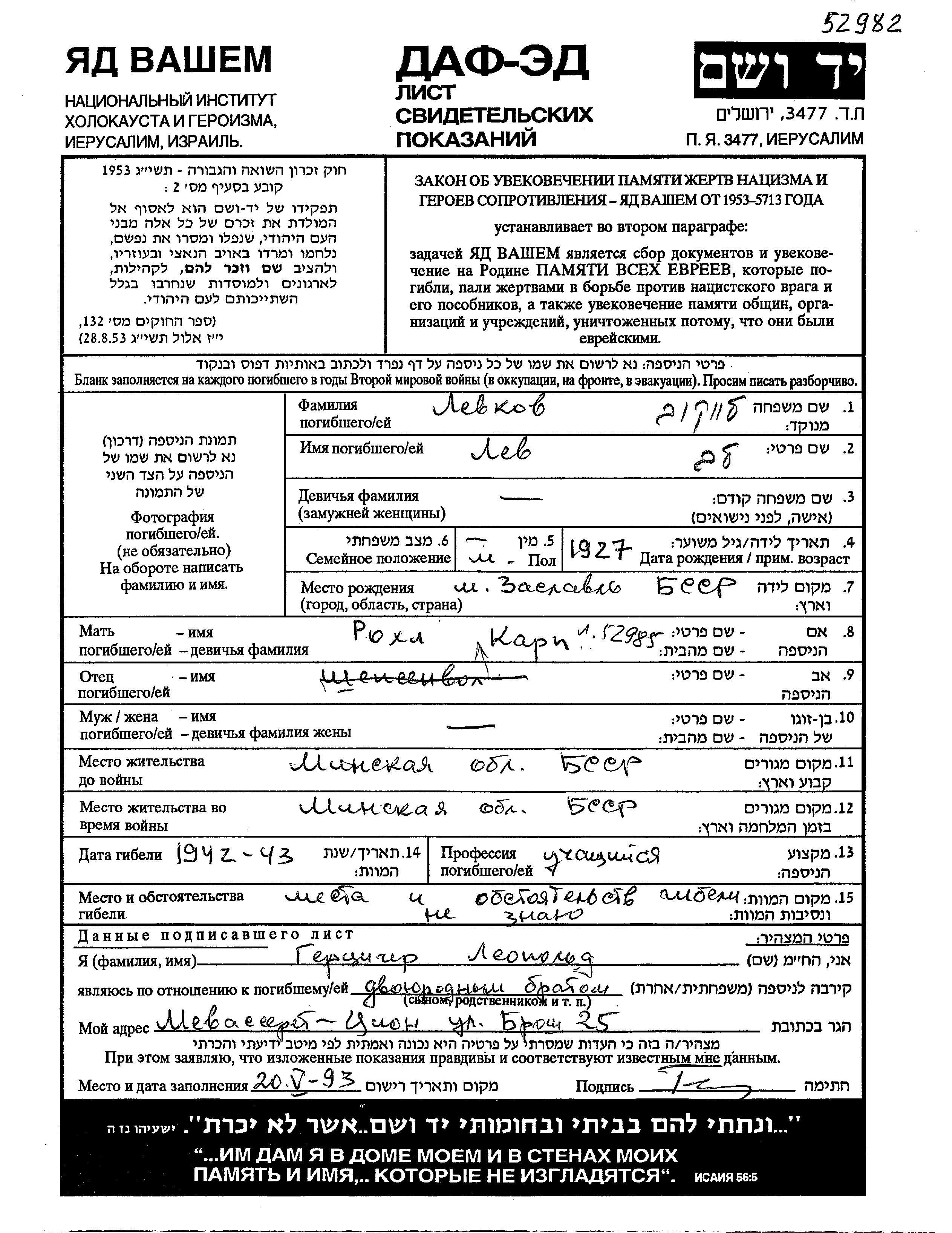 Во время Шоа евреев уничтожали разными способами: газовые камеры, расстрелы, их заживо хоронили или сжигали, непосильным принудительным трудом, голодом, эпидемиями, отсутствием минимальных гигиенических условий и медицинского обслуживания, и т.д. Некоторые евреи добровольно расстались со своей жизнью, чтобы избежать ареста и дальнейших преследований или чтобы покончить с безысходностью и бесконечными страданиями. Десятки тысяч еврейских солдат, служивших в Советской армии и попавших в плен, , были отобраны как евреи и убиты. Многие были зарегистрированы как «пропавшие без вести».