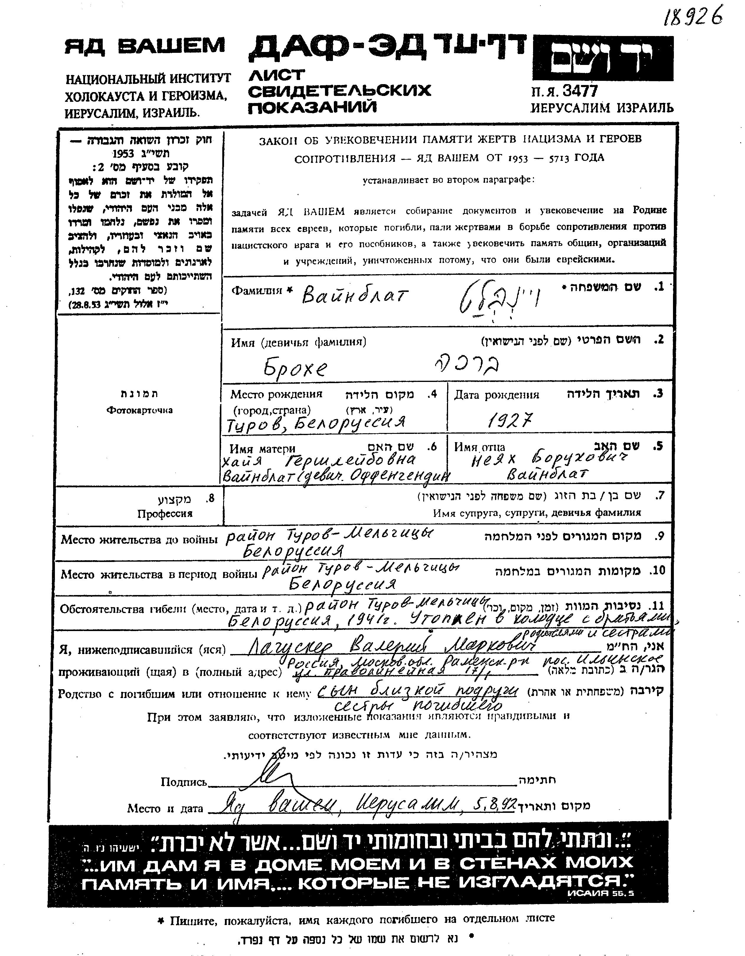 Поиск подателя Листа свидетельских показаний. Поиск по любому имени, включая уменьшительное или прозвище