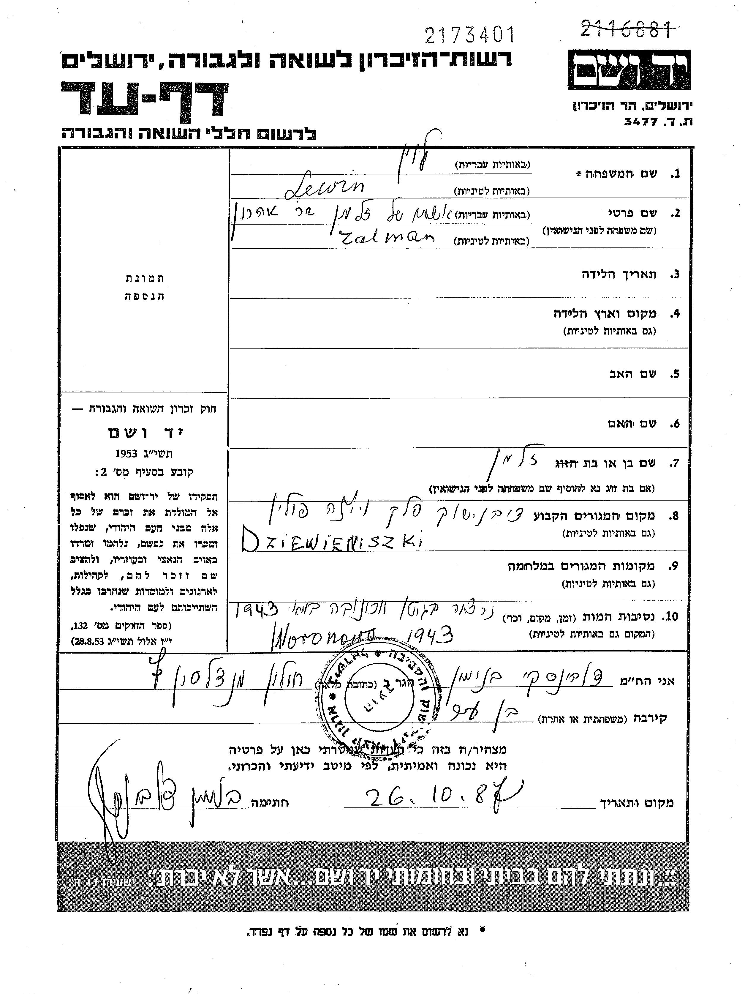 Яд Вашем - Листы свидетельских показаний Мемориального фонда