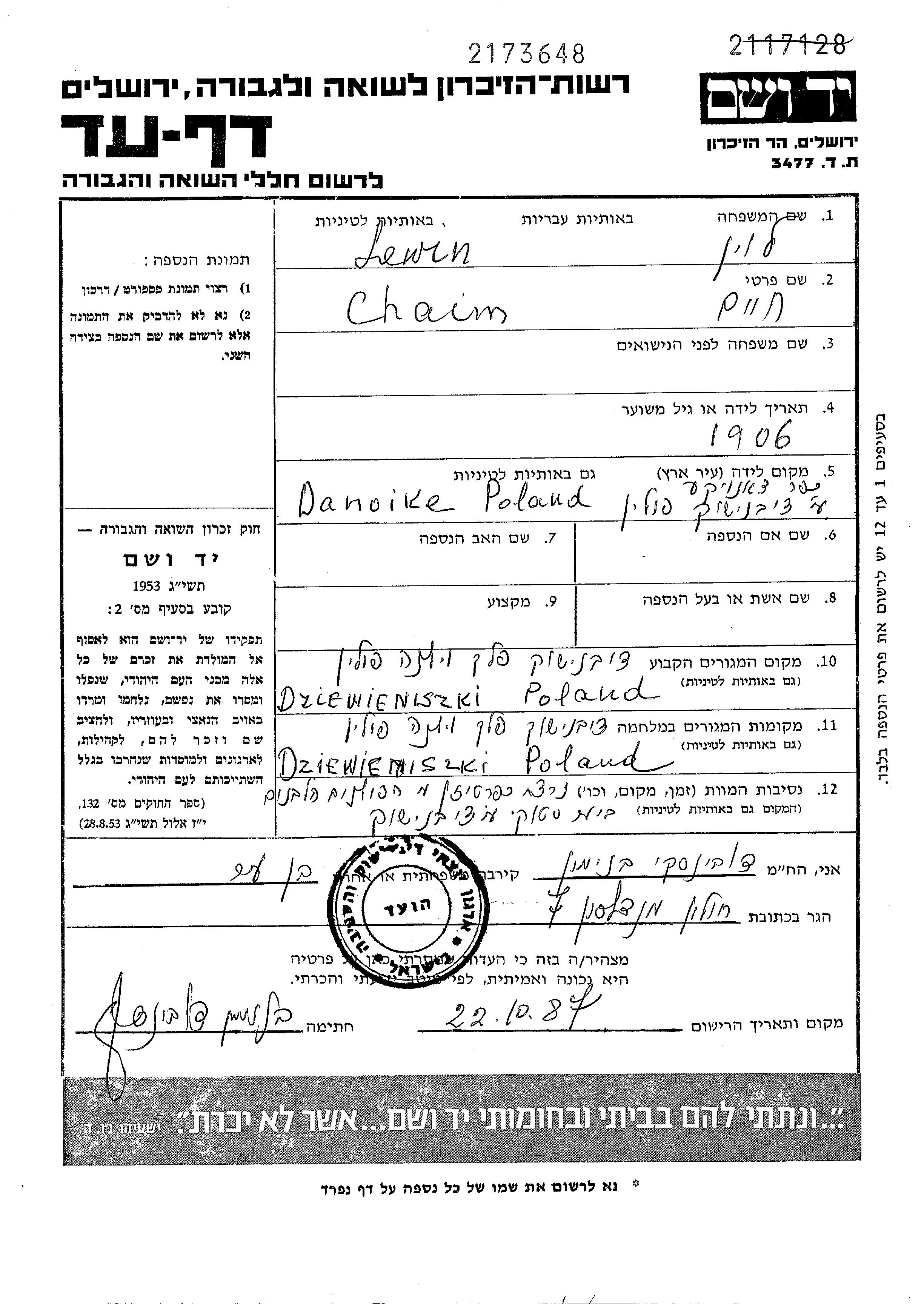 Поиск подателя Листа свидетельских показаний. Поиск по любому имени, включая уменьшительное или прозвище