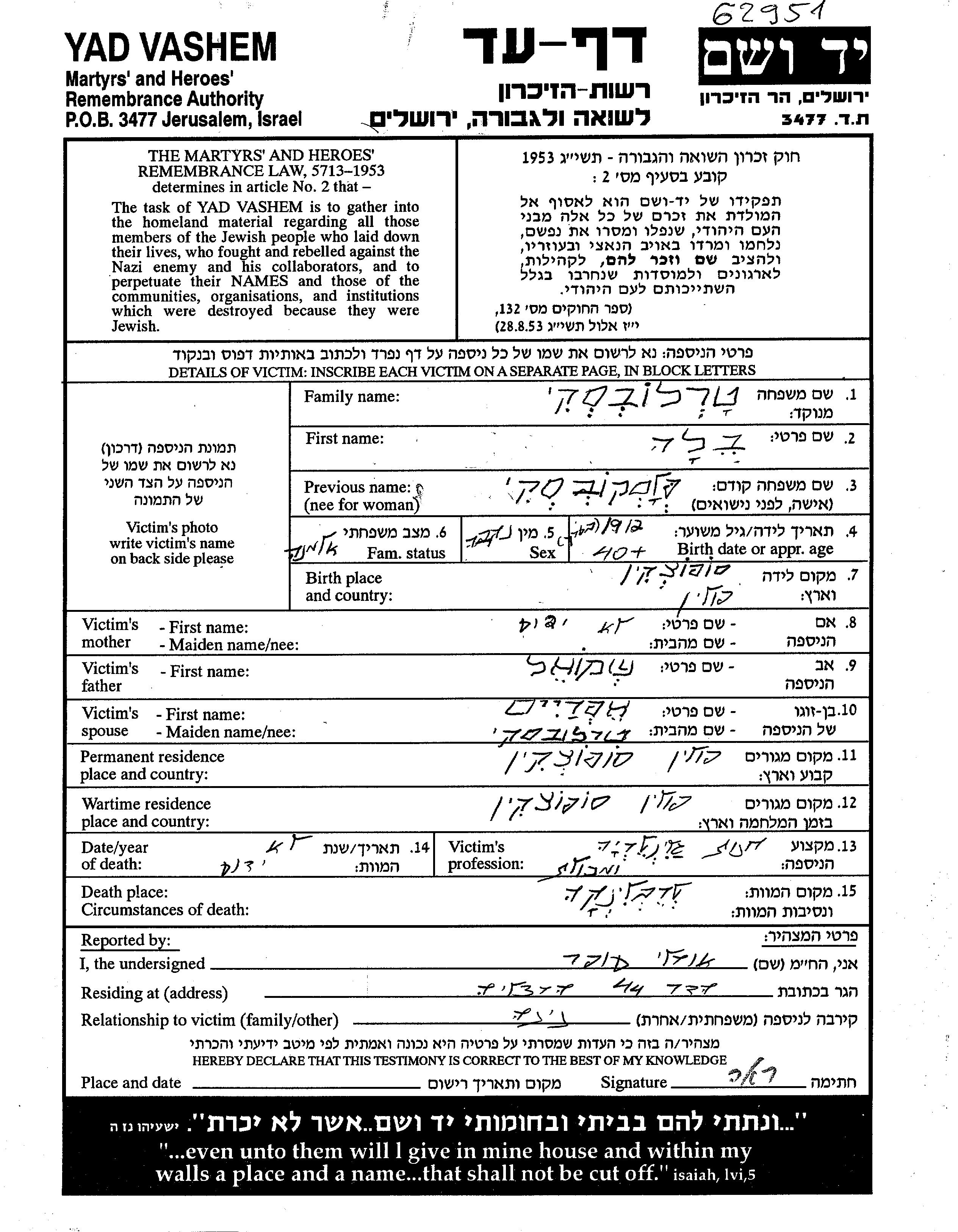 Яд Вашем - Листы свидетельских показаний Мемориального фонда