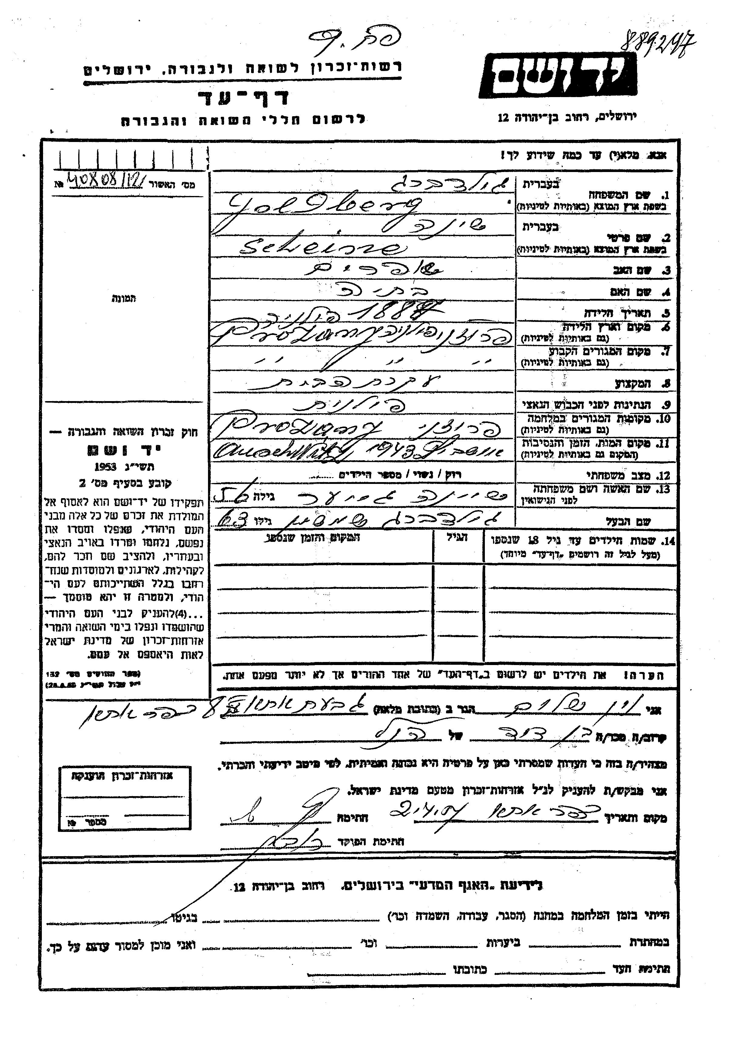 Яд Вашем - Листы свидетельских показаний Мемориального фонда