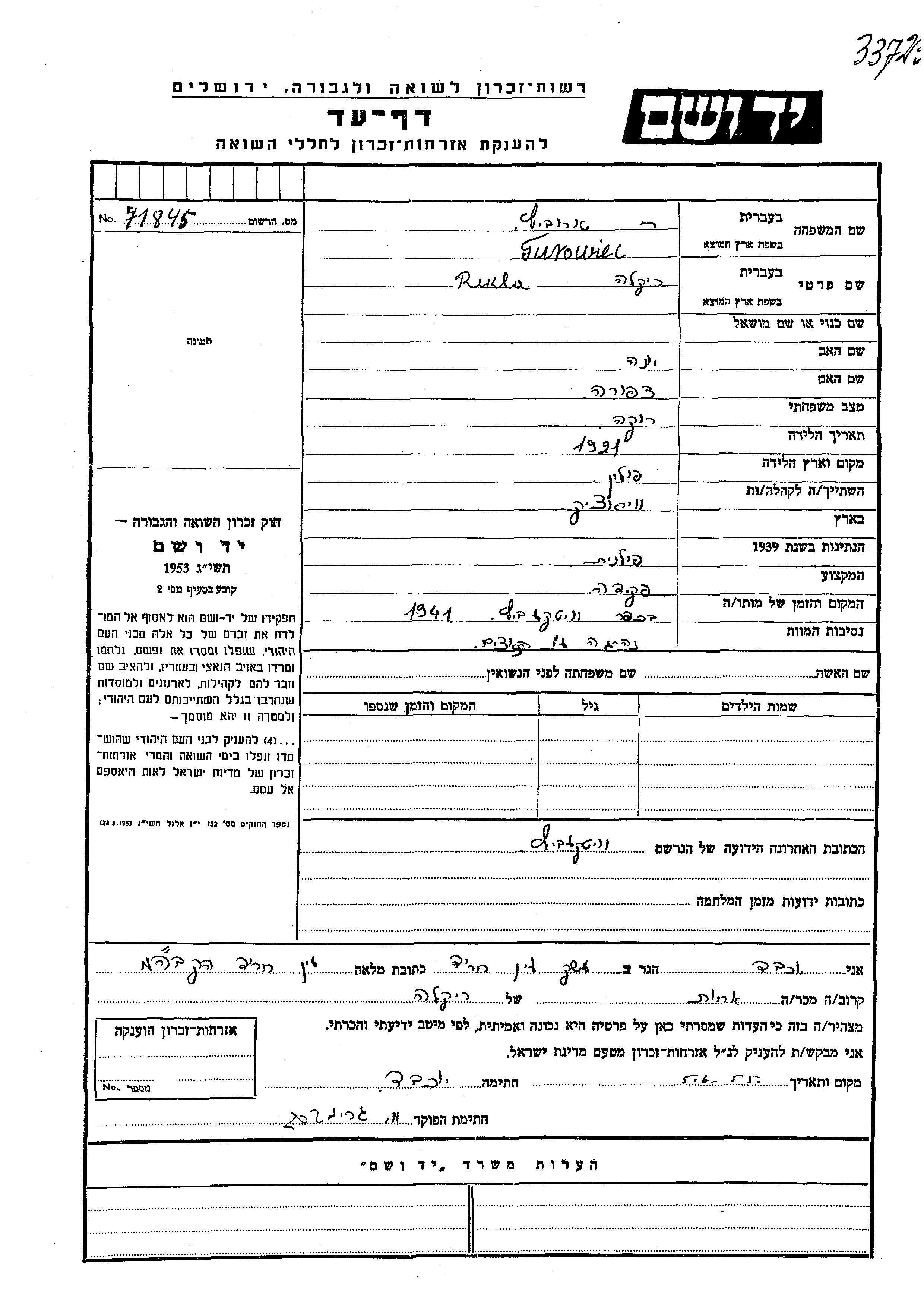 Яд Вашем - Листы свидетельских показаний Мемориального фонда