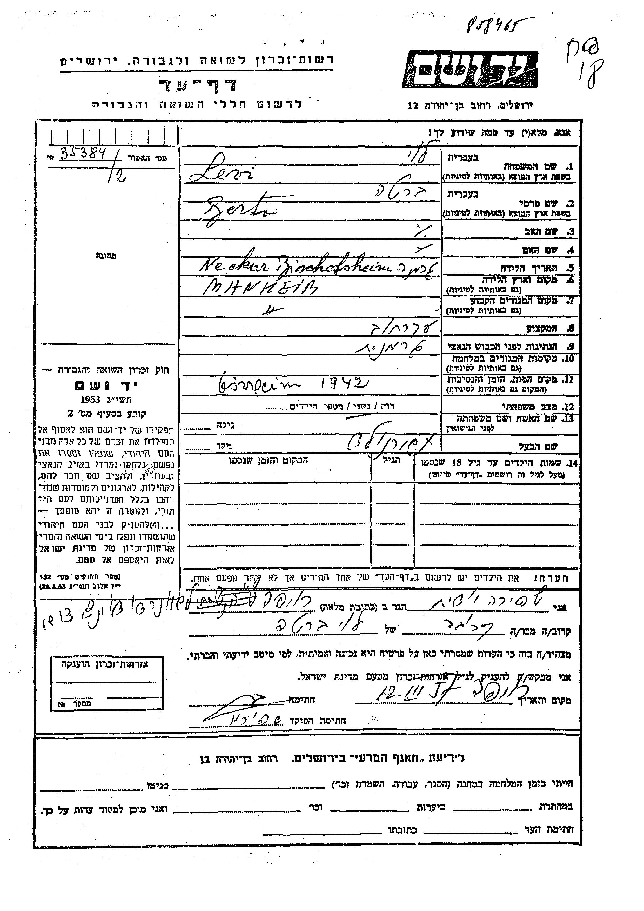 Леви Берта Маннгейм, Германия Лист свидетельских показаний