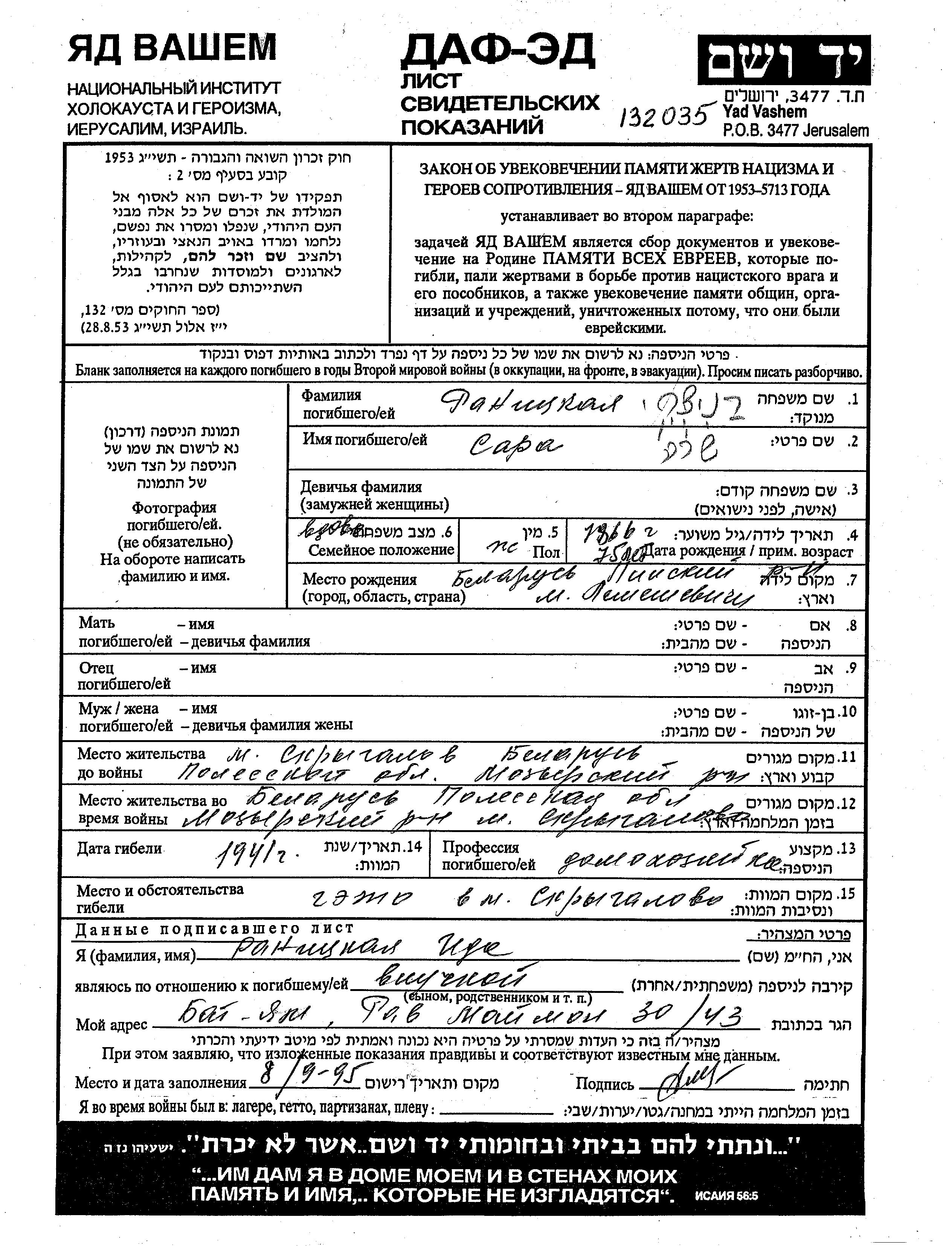 Поиск подателя Листа свидетельских показаний. Поиск по любому имени, включая уменьшительное или прозвище