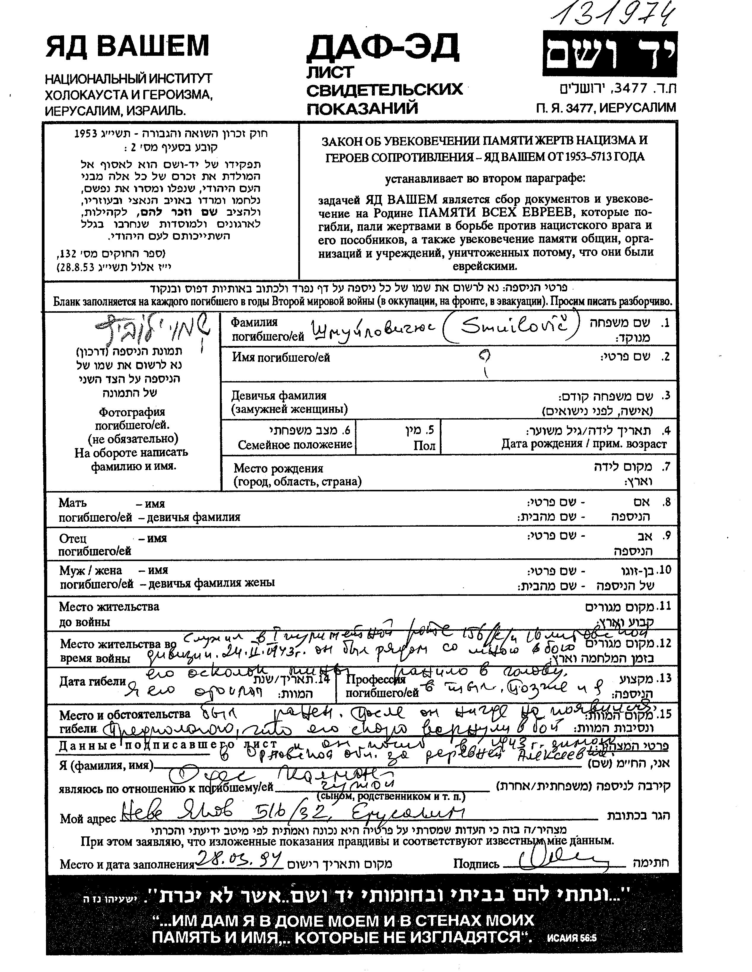 Поиск подателя Листа свидетельских показаний. Поиск по любому имени, включая уменьшительное или прозвище