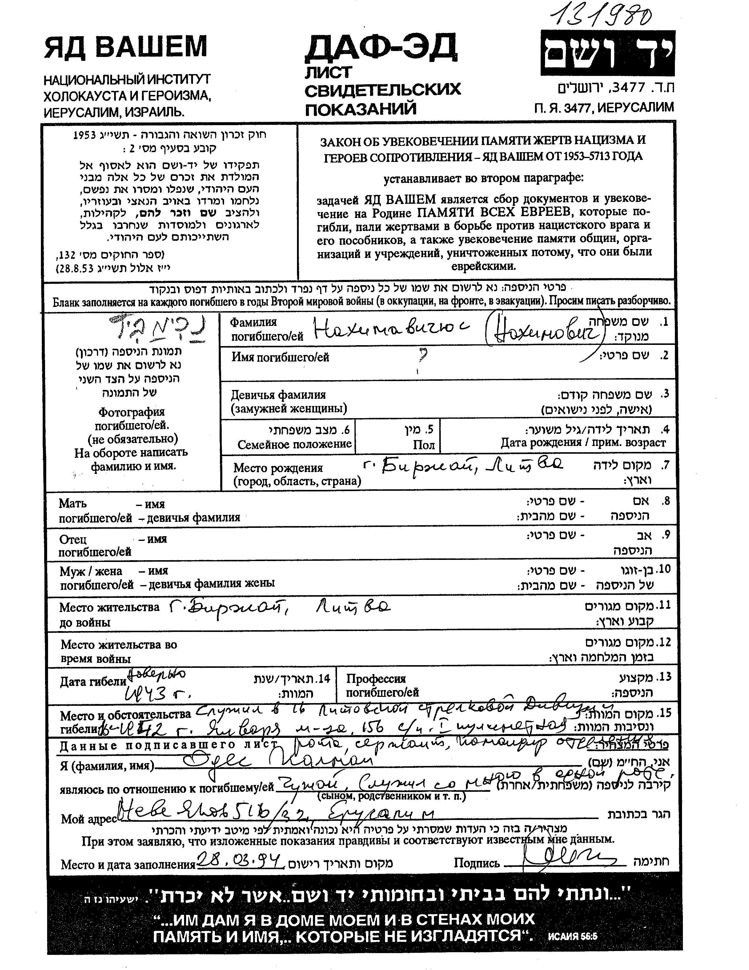 Поиск подателя Листа свидетельских показаний. Поиск по любому имени, включая уменьшительное или прозвище