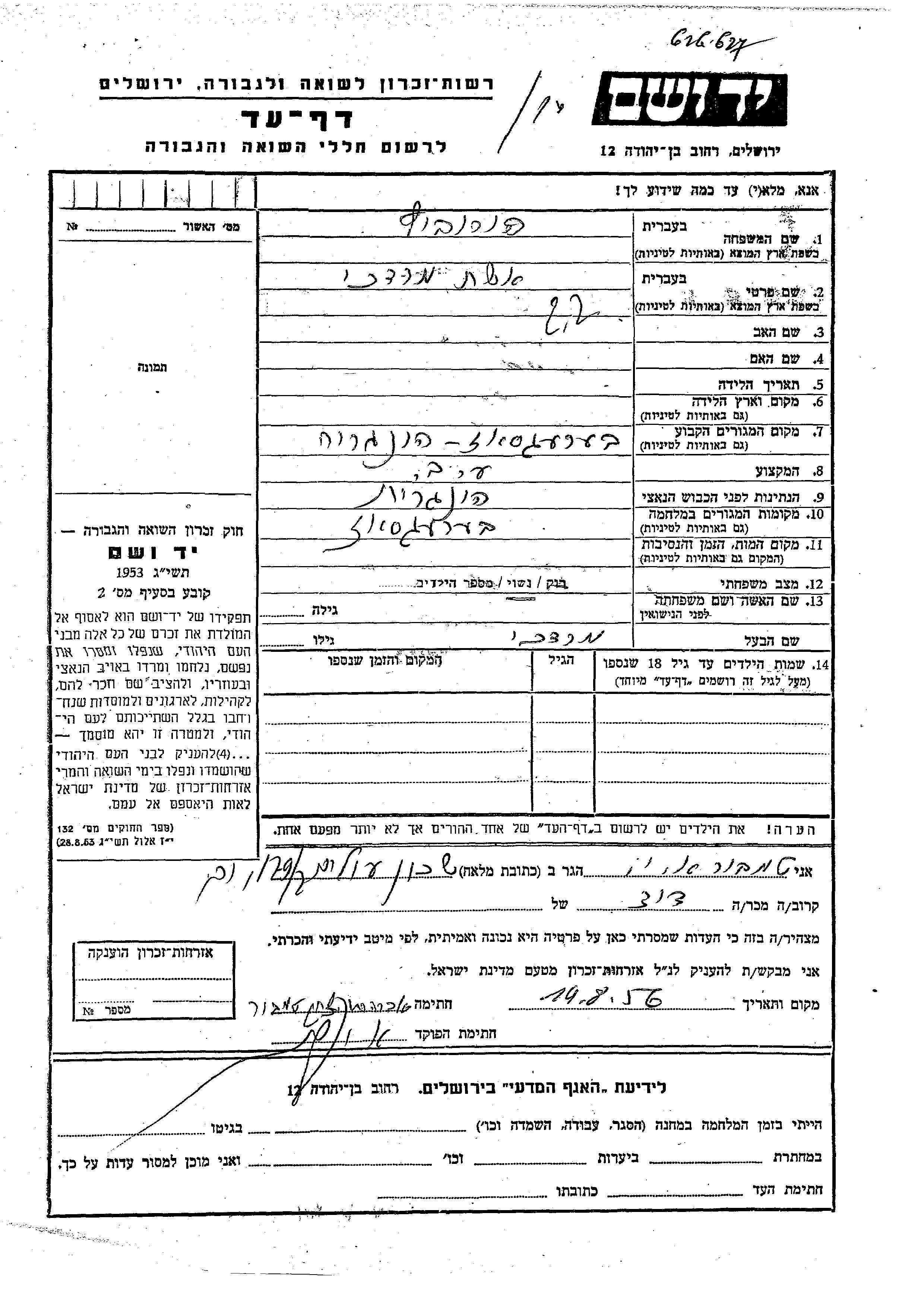 Яд Вашем - Листы свидетельских показаний Мемориального фонда
