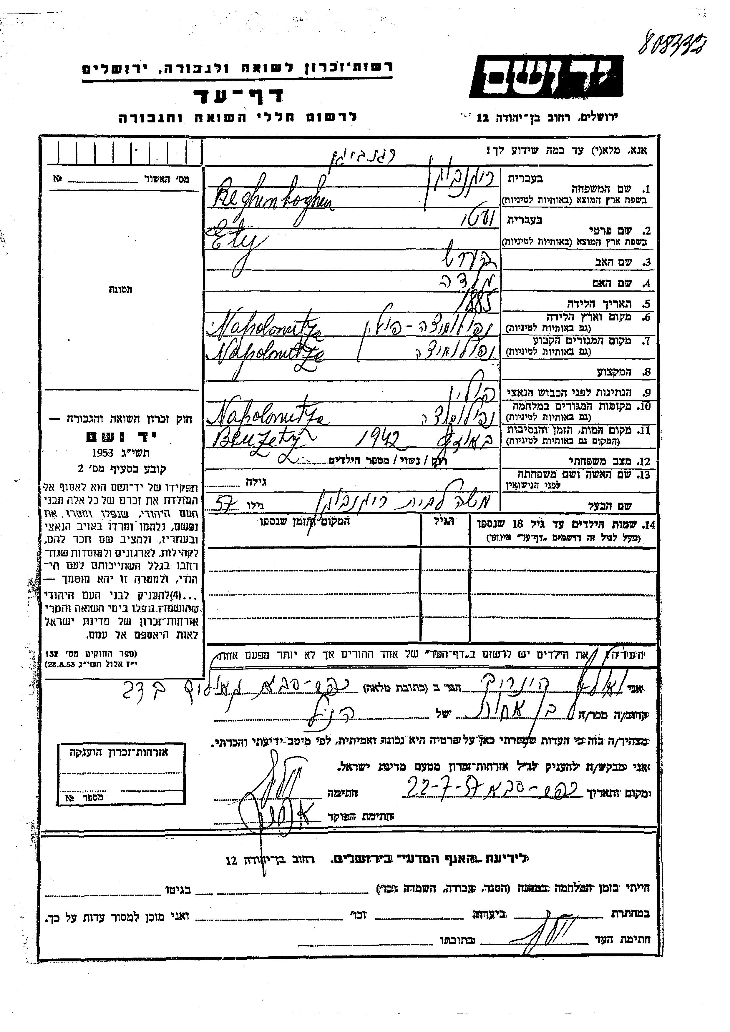 Яд Вашем - Листы свидетельских показаний Мемориального фонда