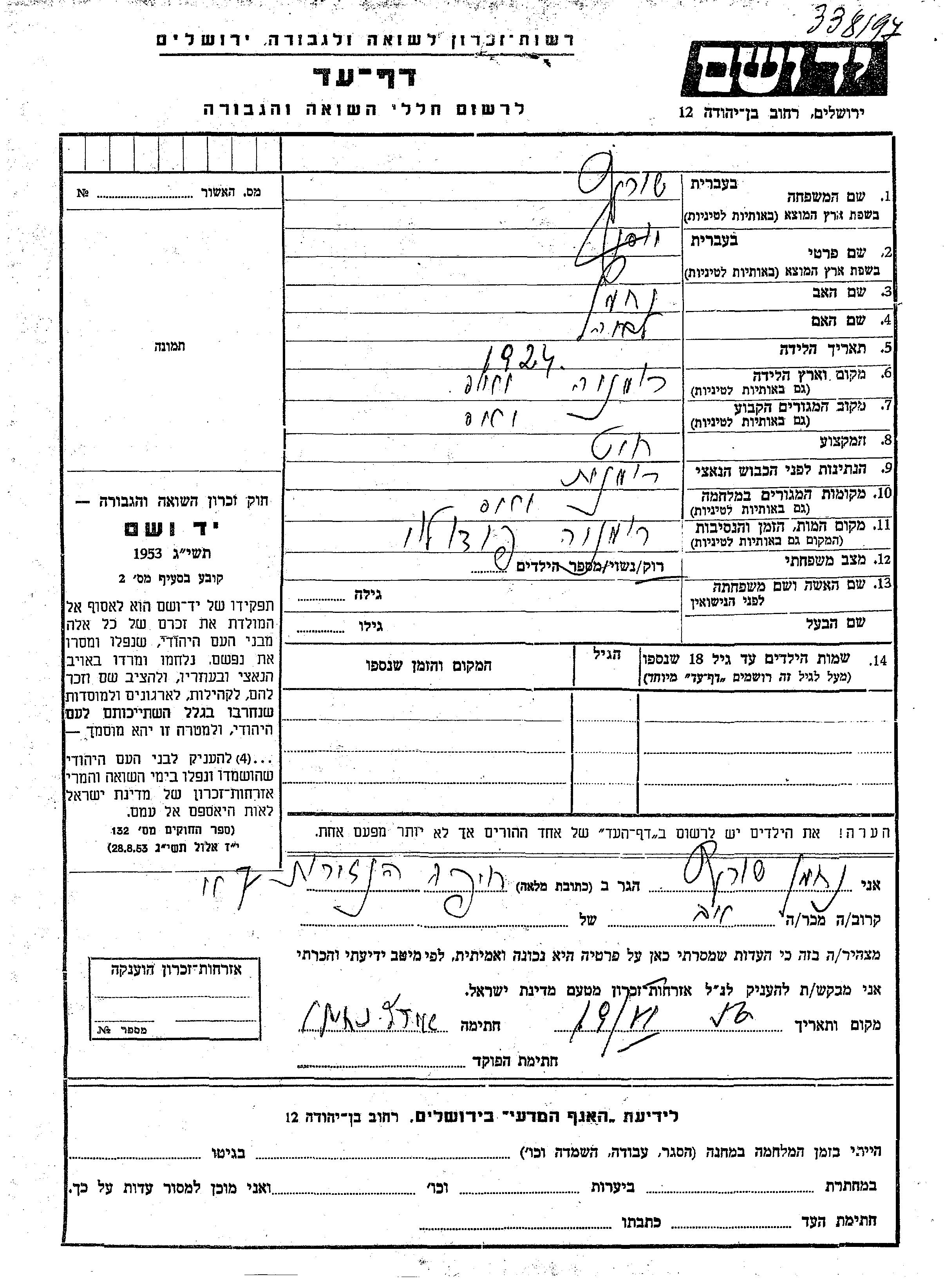 Яд Вашем - Листы свидетельских показаний Мемориального фонда