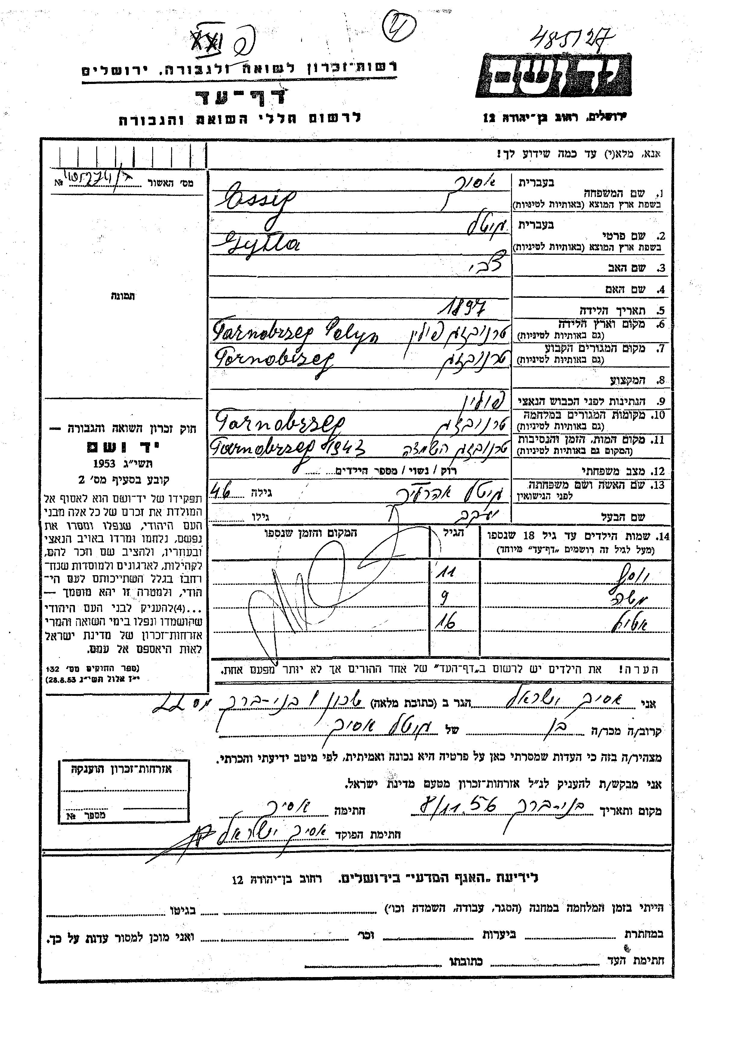 Яд Вашем - Листы свидетельских показаний Мемориального фонда