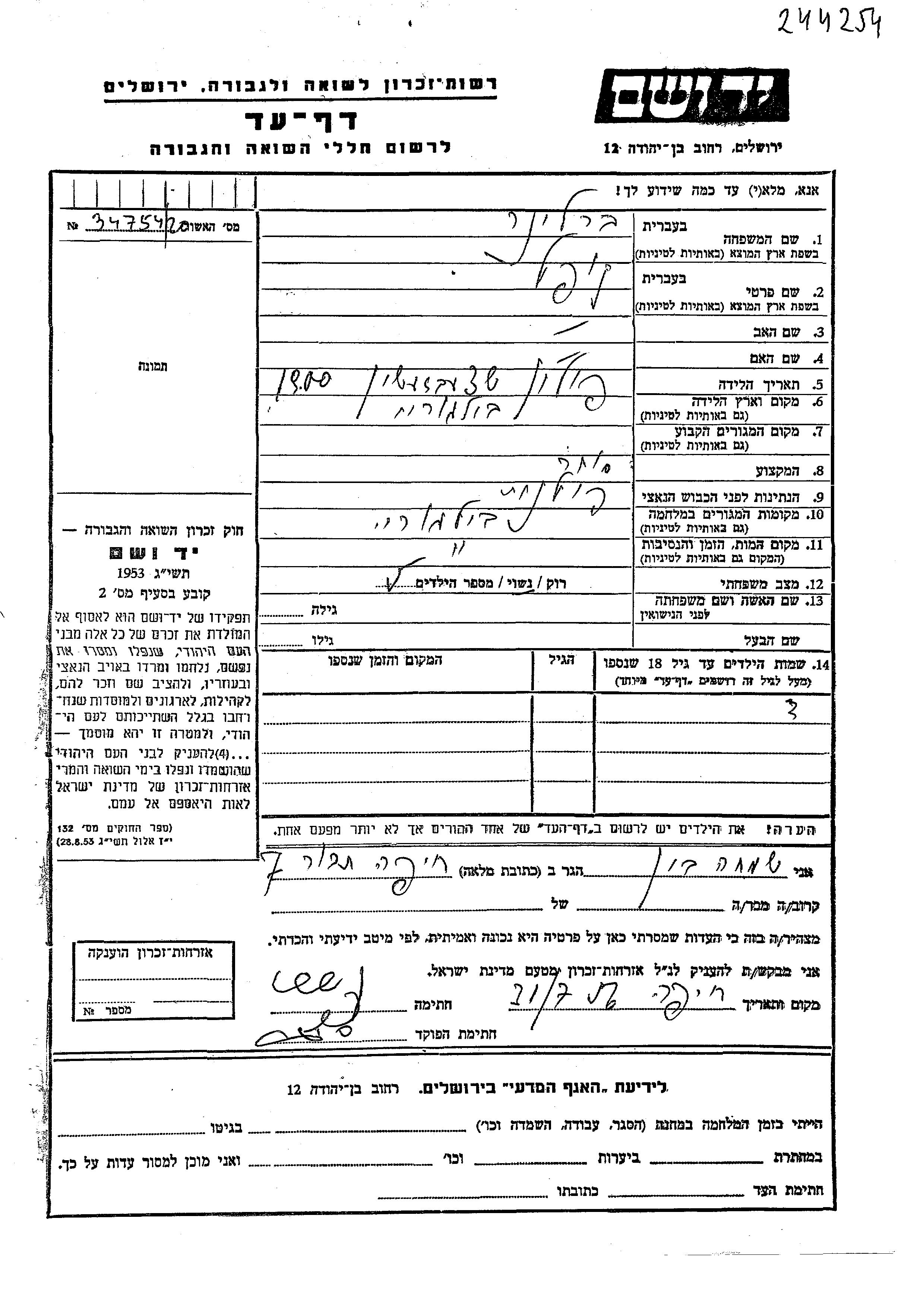 Яд Вашем - Листы свидетельских показаний Мемориального фонда