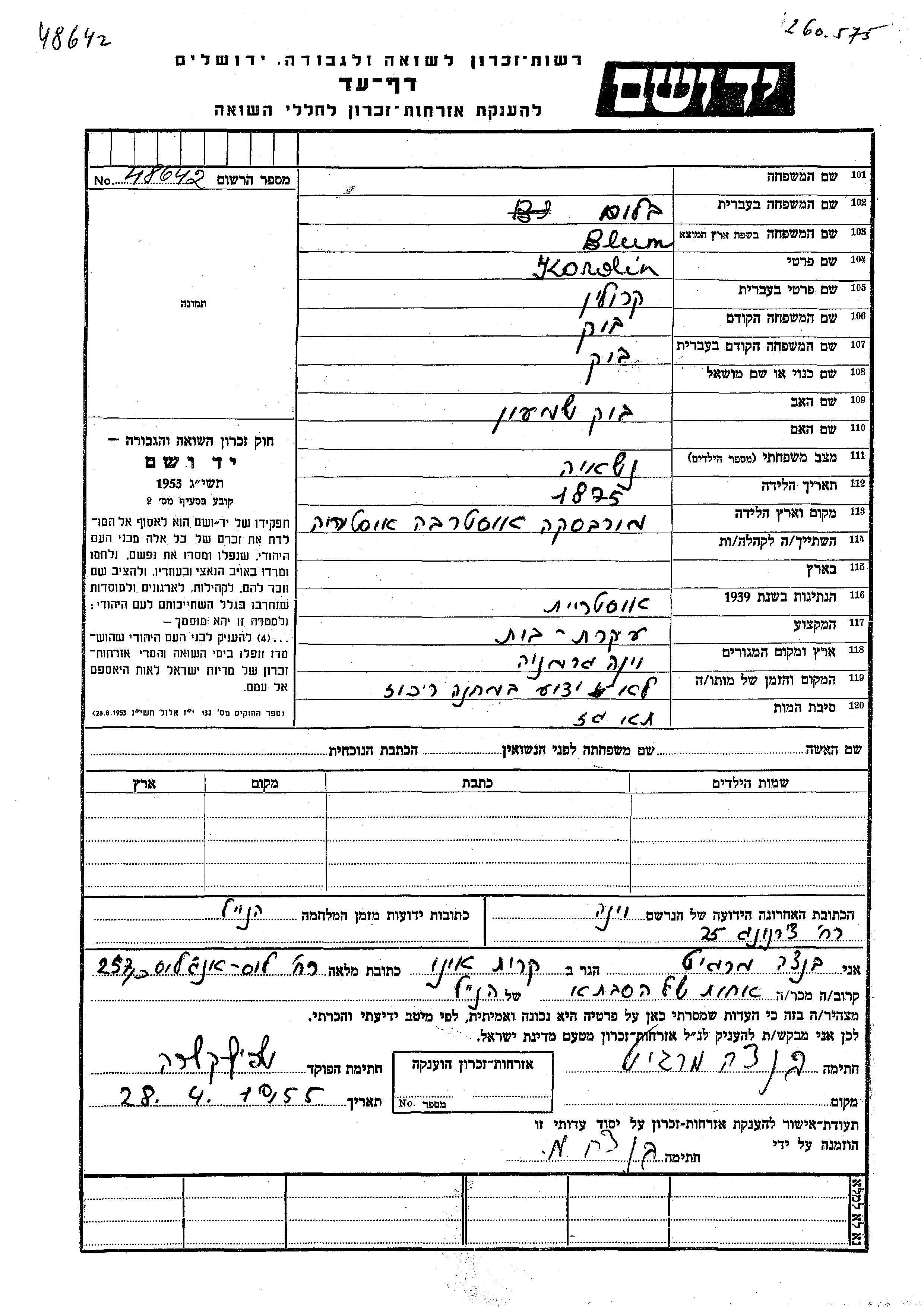 Яд Вашем - Листы свидетельских показаний Мемориального фонда
