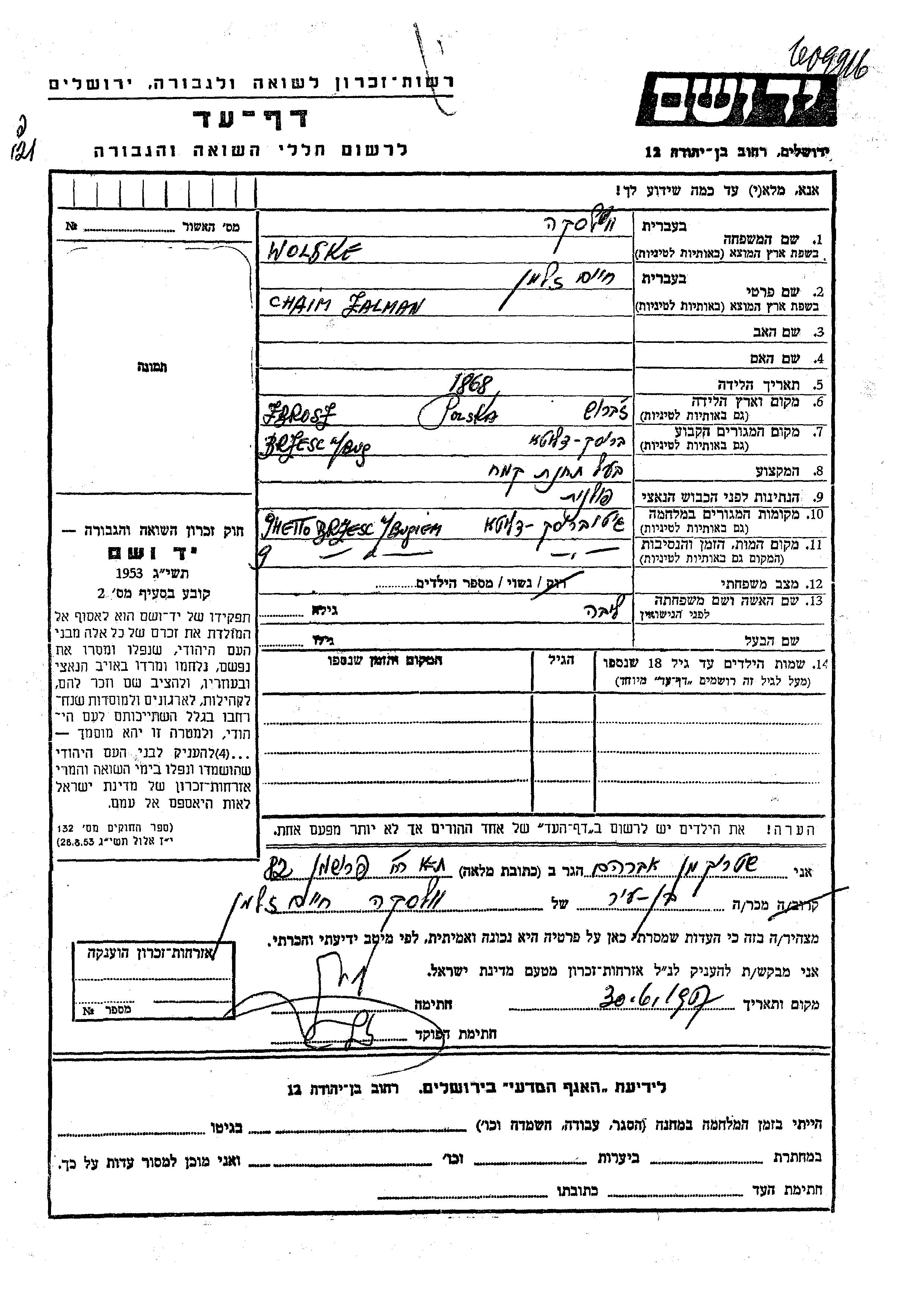 Яд Вашем - Листы свидетельских показаний Мемориального фонда