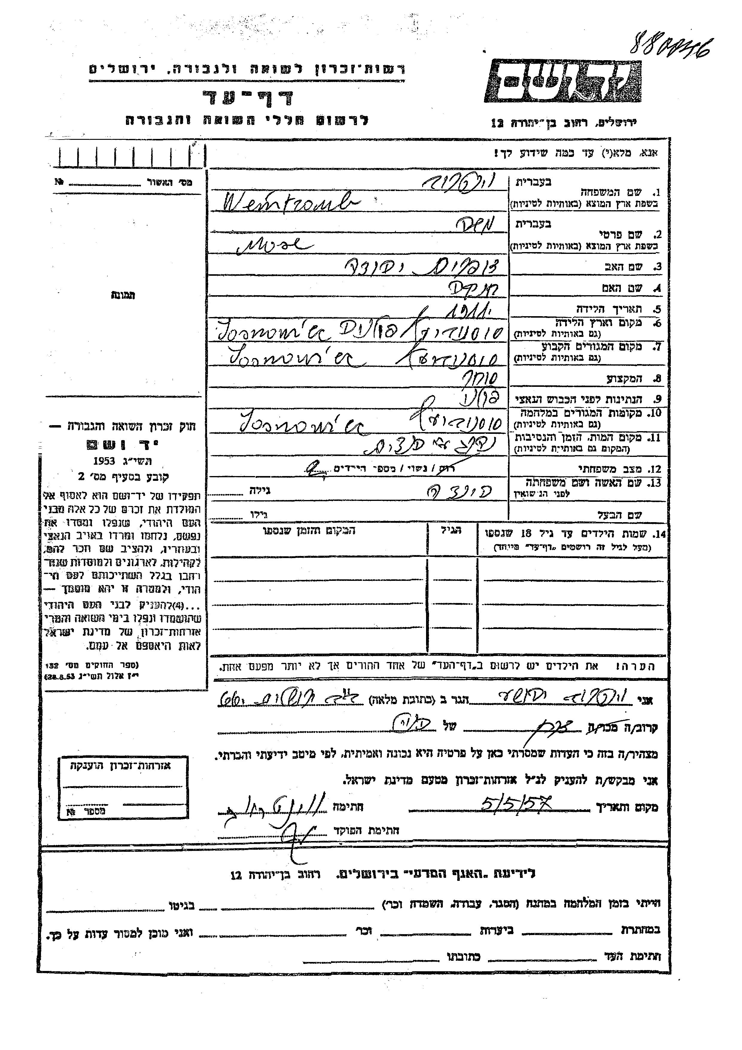 Яд Вашем - Листы свидетельских показаний Мемориального фонда