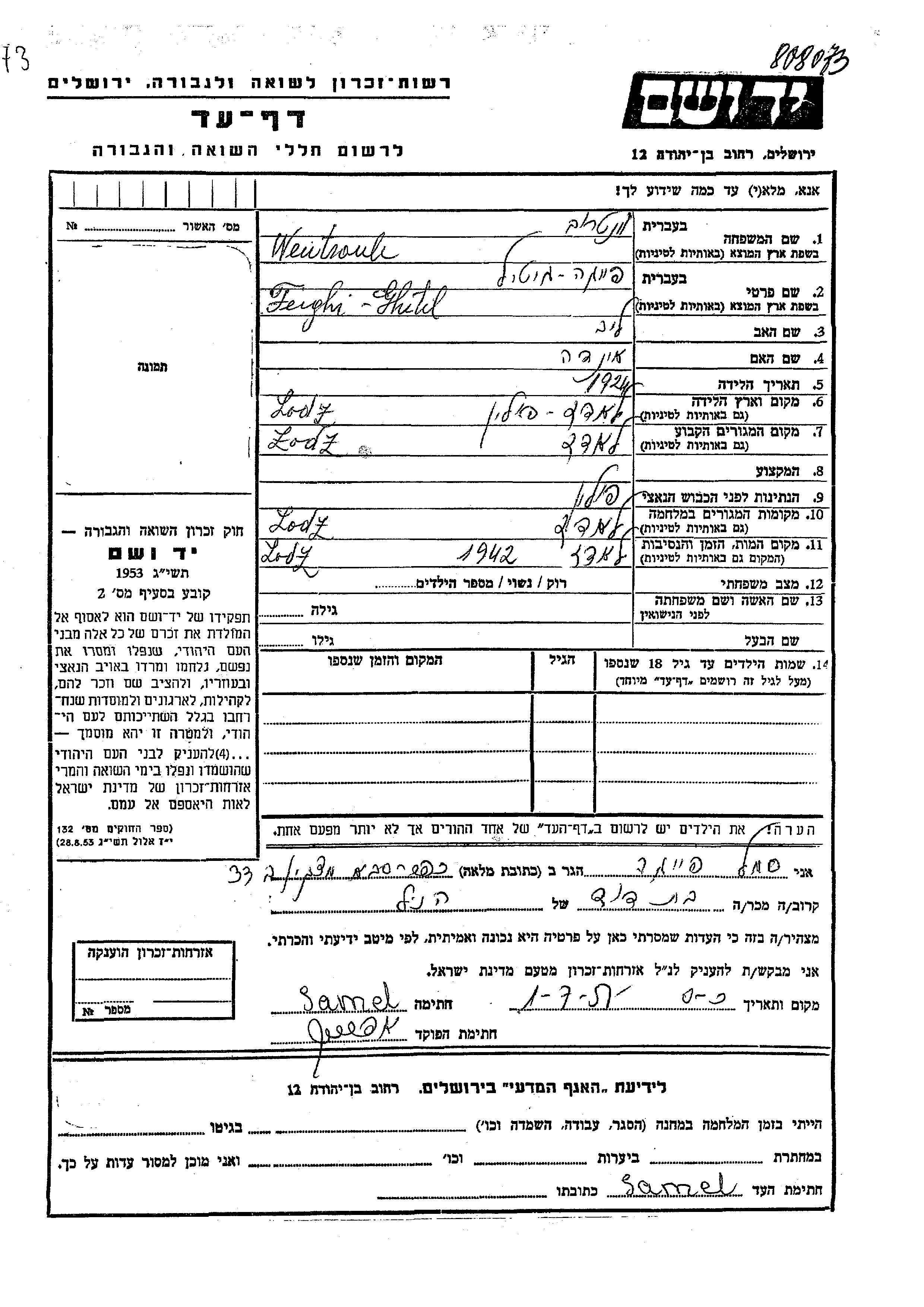 Яд Вашем - Листы свидетельских показаний Мемориального фонда