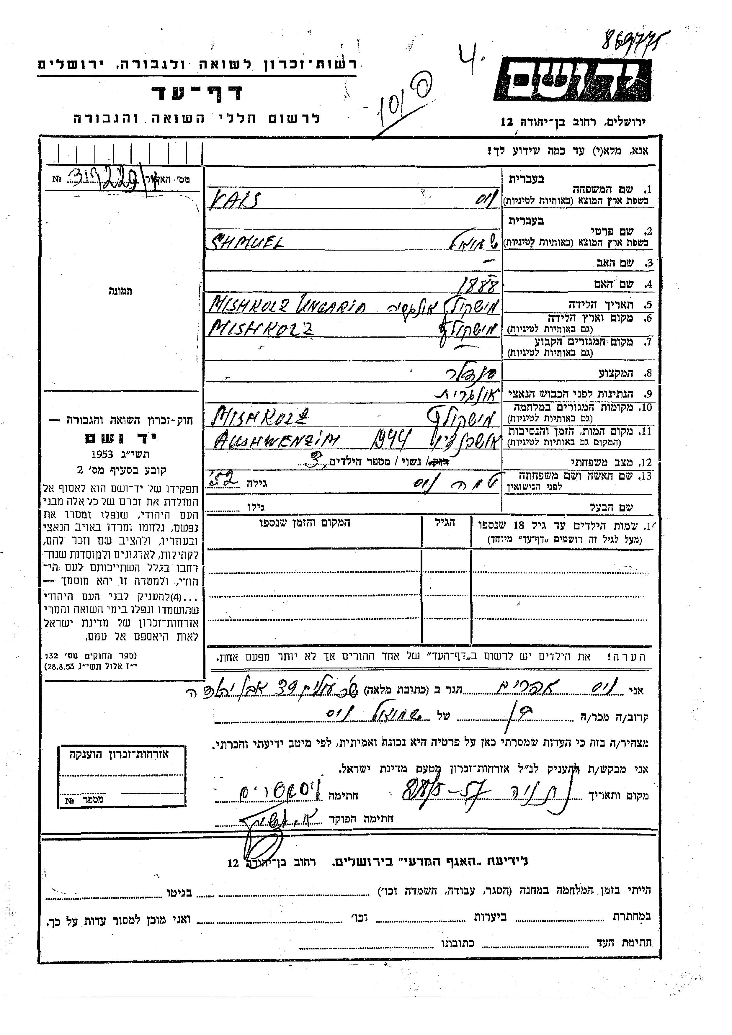 Шмуэль уничтожен в период Шоа. место смерти: Аушвиц, Польша в 1944.